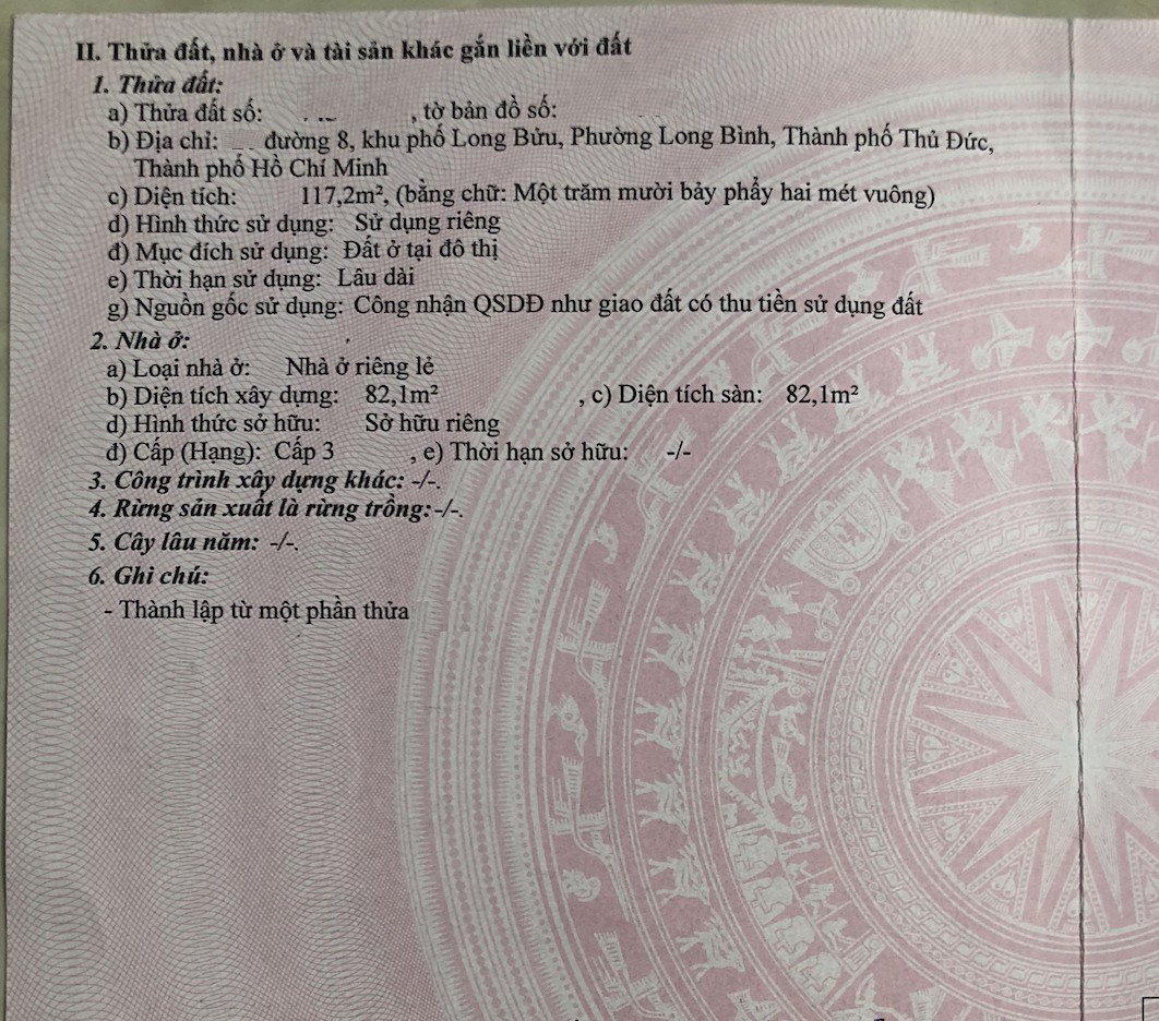 Địa chỉ tài sản: Đường số 8, Phường Long Bình, Phường Long Bình, Quận 9, Hồ Chí Minh