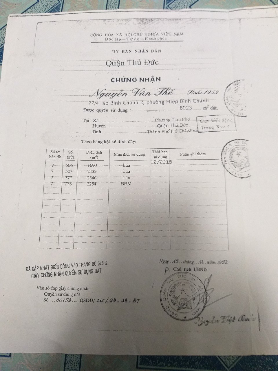 Địa chỉ tài sản: đường Tam Bình, Phường Tam Phú, Phường Tam Phú, Quận Thủ Đức, Hồ Chí Minh
