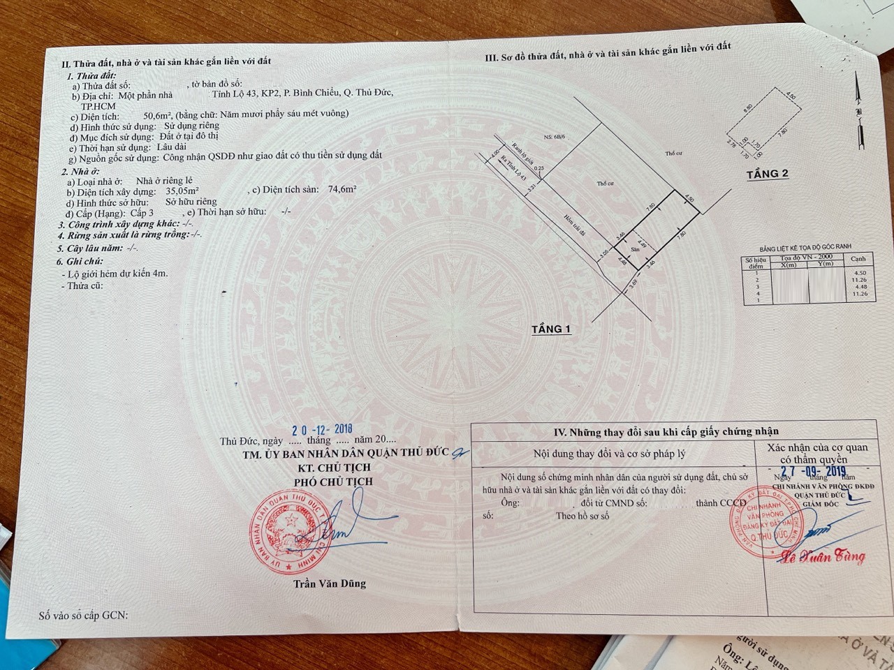 *Diện Tích đất công nhận: 50.6 m2 ngang 4.48 m x dài 11.29 m.