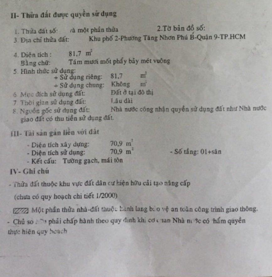 Địa chỉ tài sản: Đường Trương Văn Hải, Phường Tăng Nhơn Phú B, Phường Tăng Nhơn Phú B, Quận 9, Hồ Chí Minh