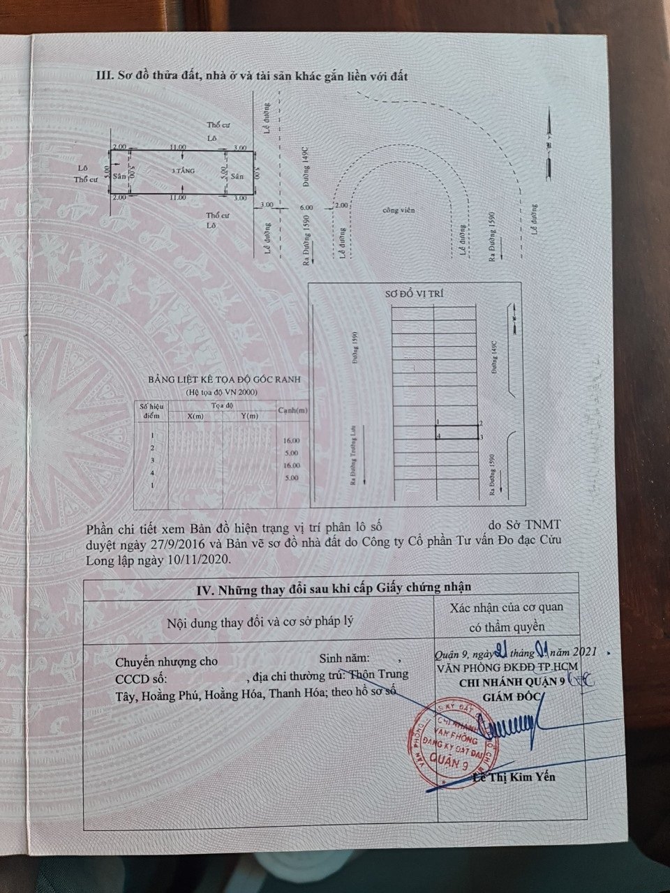 Địa chỉ tài sản: Khu nhà ở Điền Phúc Thành, Khu phố Trường Lưu, Phường Long Trường, Phường Long Trường, Quận 9, Hồ Chí Minh