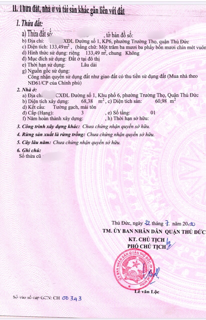 Địa chỉ tài sản: khu cư xá điện lực. Trường thọ, Phường Trường Thọ, Quận Thủ Đức, Hồ Chí Minh
