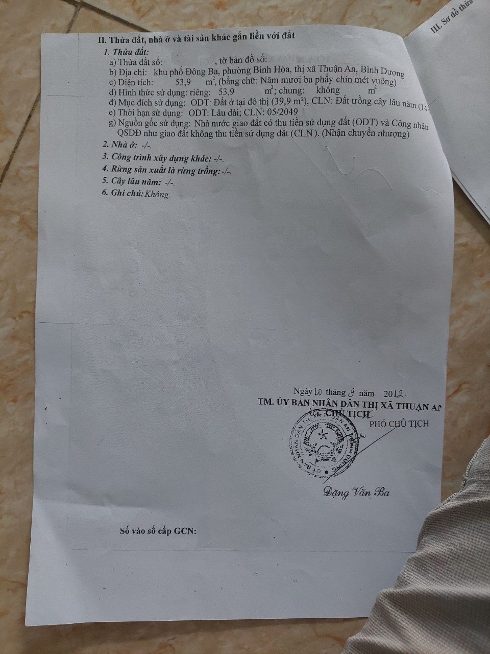 Địa chỉ tài sản: khu phố Đông Ba, Đông Hòa, Dĩ An, Phường Đông Hòa, Thị xã Dĩ An, Bình Dương