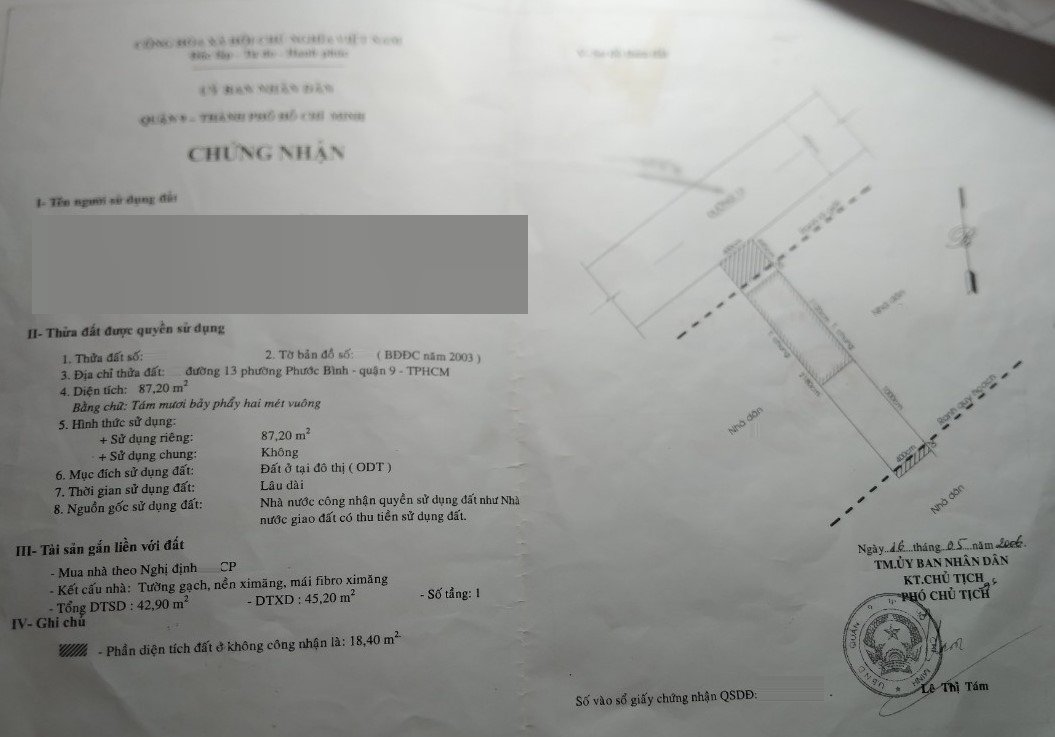 *Diện Tích đất công nhận : 87.2m2 ngang  4m x dài  21.8m