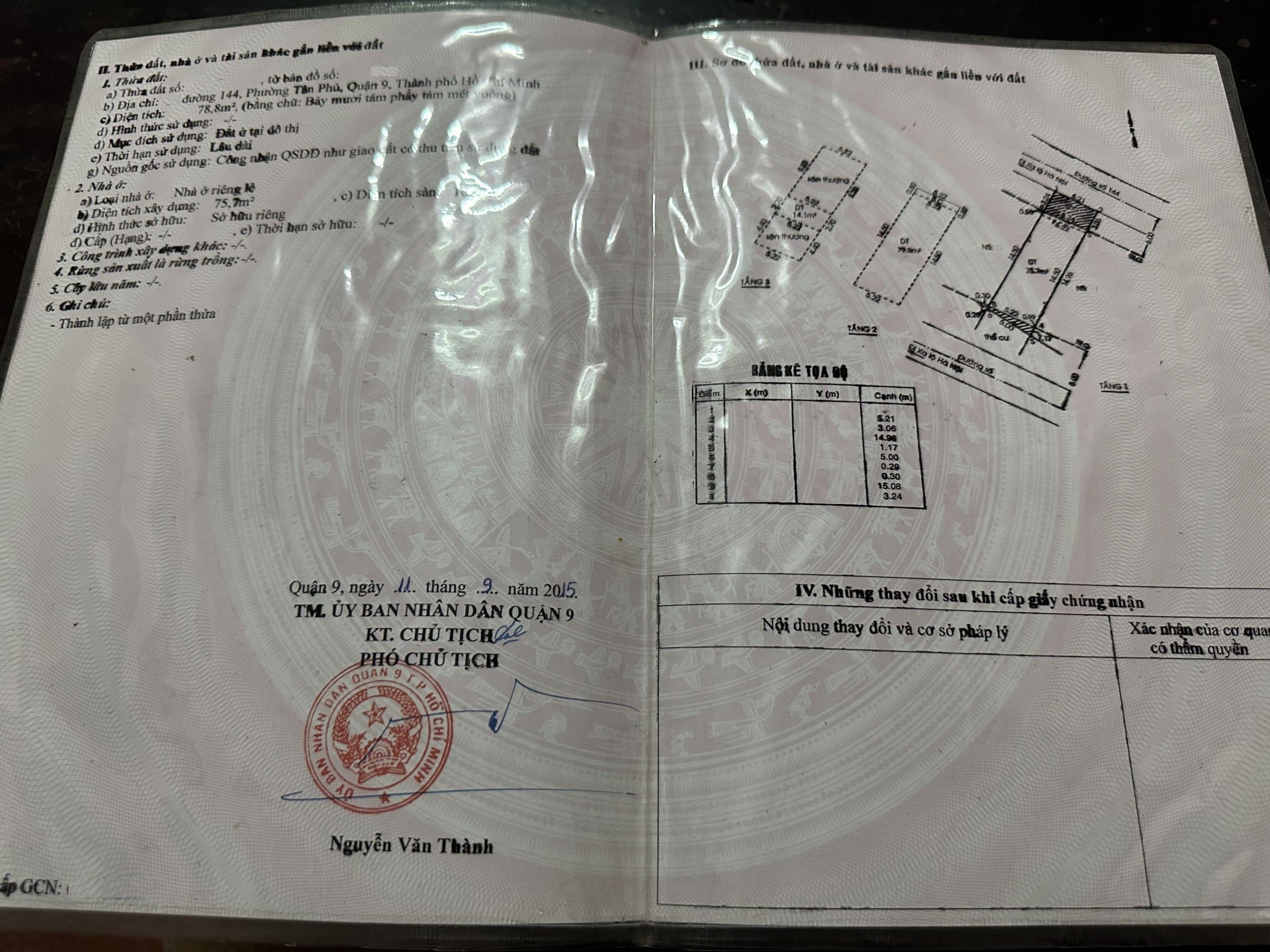 *Diện Tích đất công nhận: 78.8 m2 ngang 5.22 m x dài 15.09 m