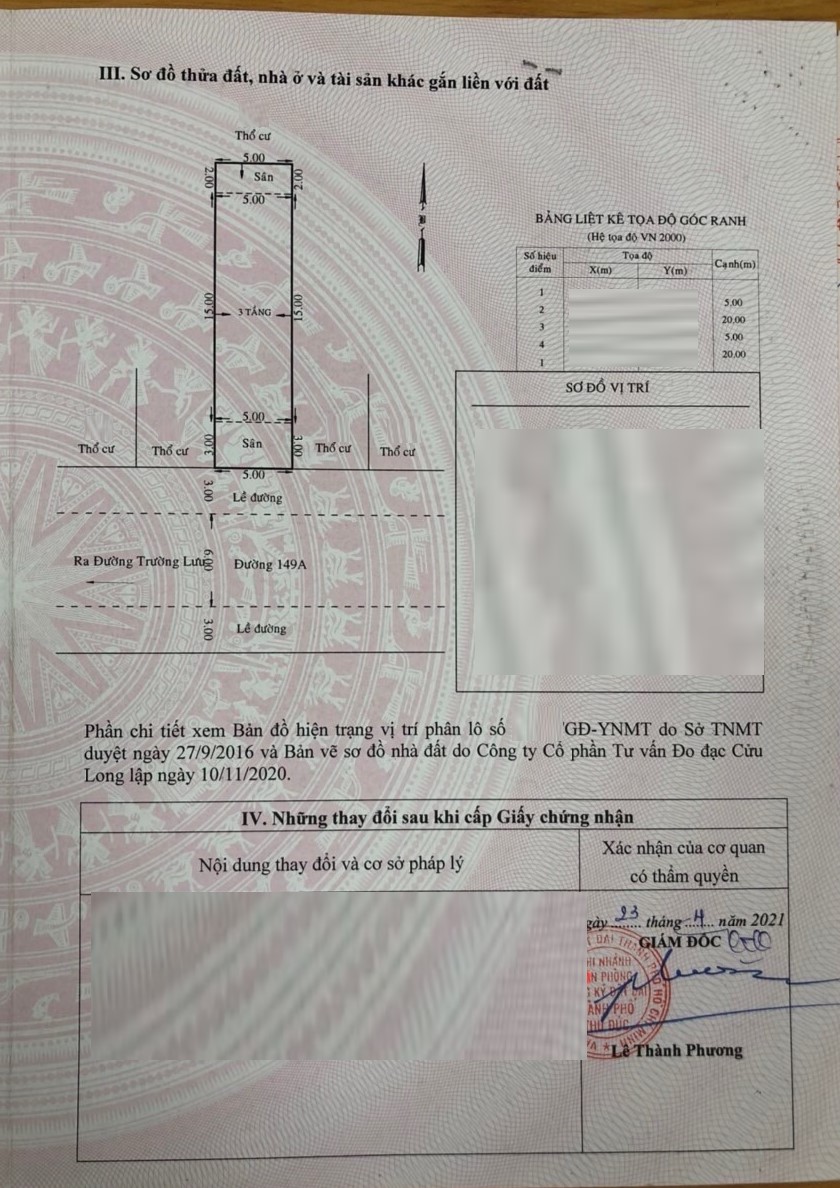 *Diện tích đất công nhận: 100m2. Ngang 5m x Dài 20m