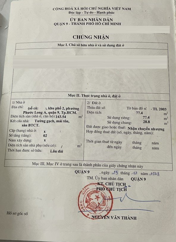 Địa chỉ tài sản: đường 198, phường Phước Long A, Phường Phước Long A, Quận 9, Hồ Chí Minh