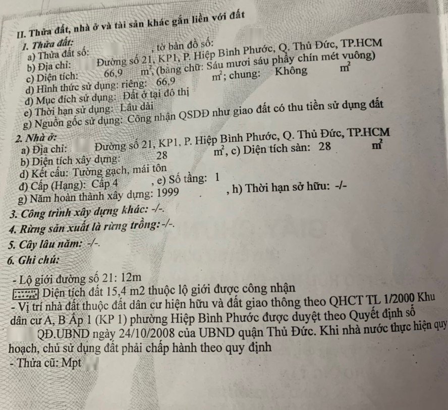 Địa chỉ tài sản: đường 21 , Phường hiệp bình phước, Phường Hiệp Bình Phước, Quận Thủ Đức, Hồ Chí Minh