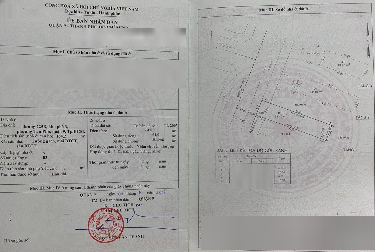 Địa chỉ tài sản: đường 225B, phường Tân Phú, Phường Tân Phú, Quận 9, Hồ Chí Minh