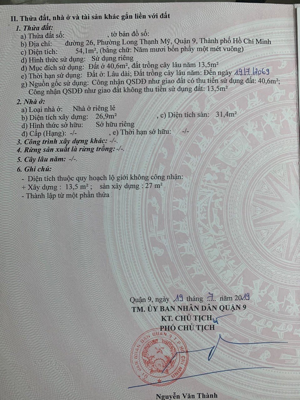 Địa chỉ tài sản: mặt tiền đường 26, phường Long Thạnh Mỹ, TP Thủ Đức., Phường Long Thạnh Mỹ, Quận 9, Hồ Chí Minh