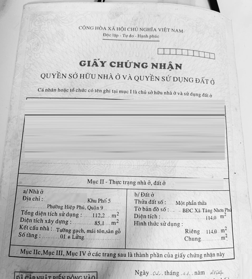 *Diện tích đất công nhận: 114m2. Ngang 5.4m x Dài 21m