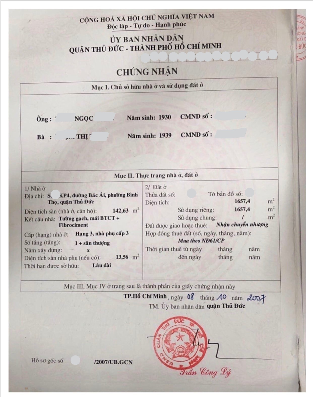 Địa chỉ tài sản: đường Bác Ái, Phường Bình Thọ, Phường Bình Thọ, Quận Thủ Đức, Hồ Chí Minh