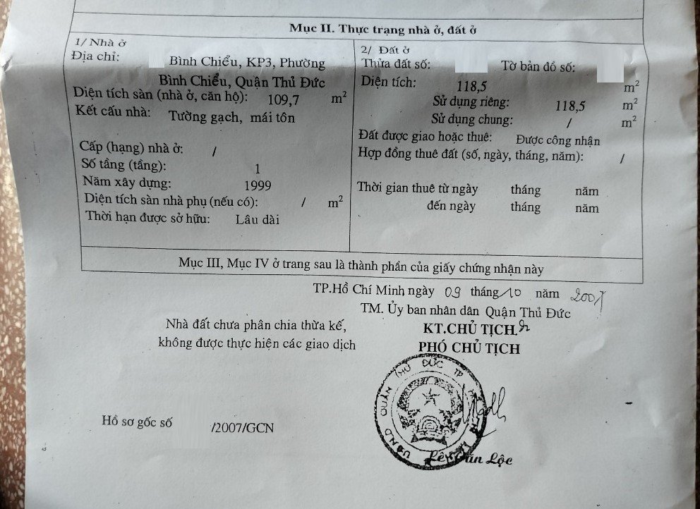 Địa chỉ tài sản: đường Bình Chiểu, phường Bình Chiểu, Phường Bình Chiểu, Quận Thủ Đức, Hồ Chí Minh