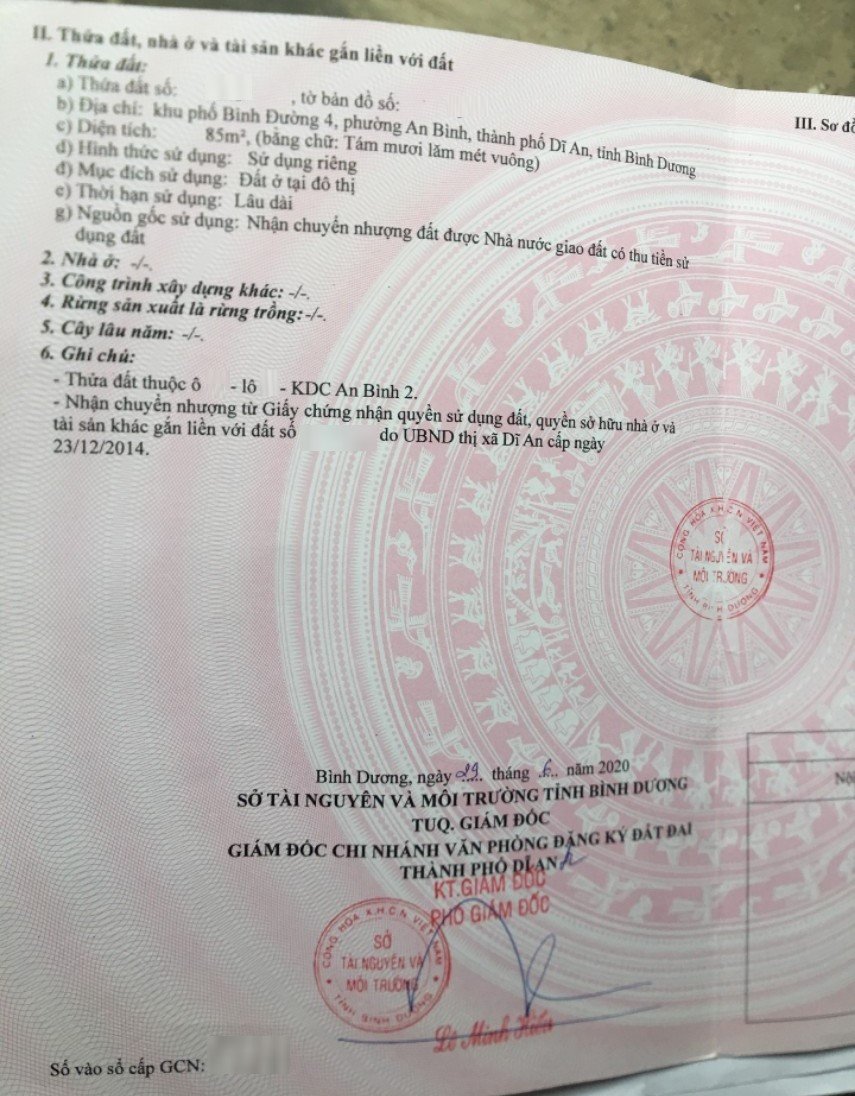 Địa chỉ tài sản: đường Bình Đường 4, phường An Bình, Phường An Bình, Thị xã Dĩ An, Bình Dương