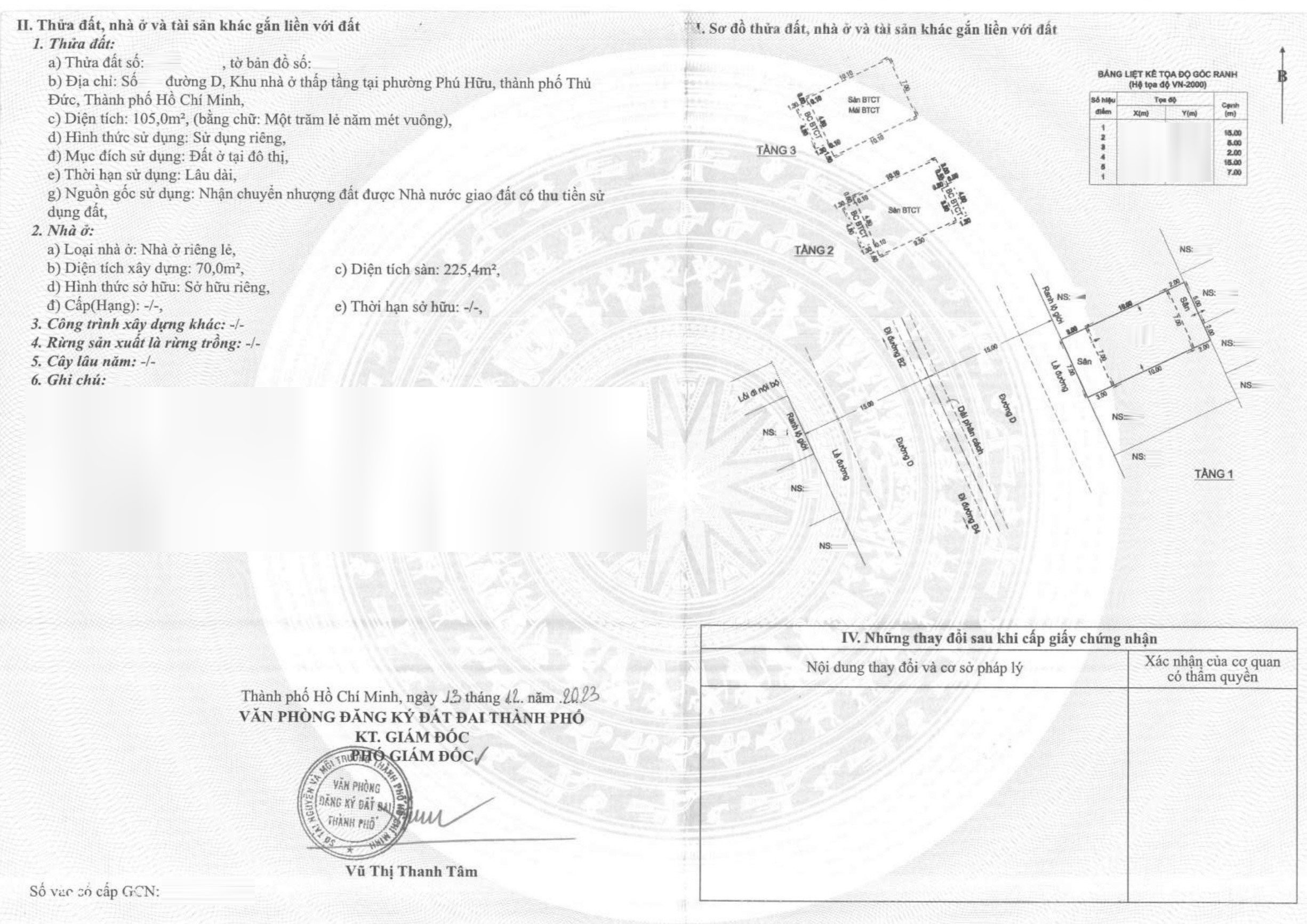 *Diện Tích đất công nhận:  105m2 ngang  7m x dài  15m