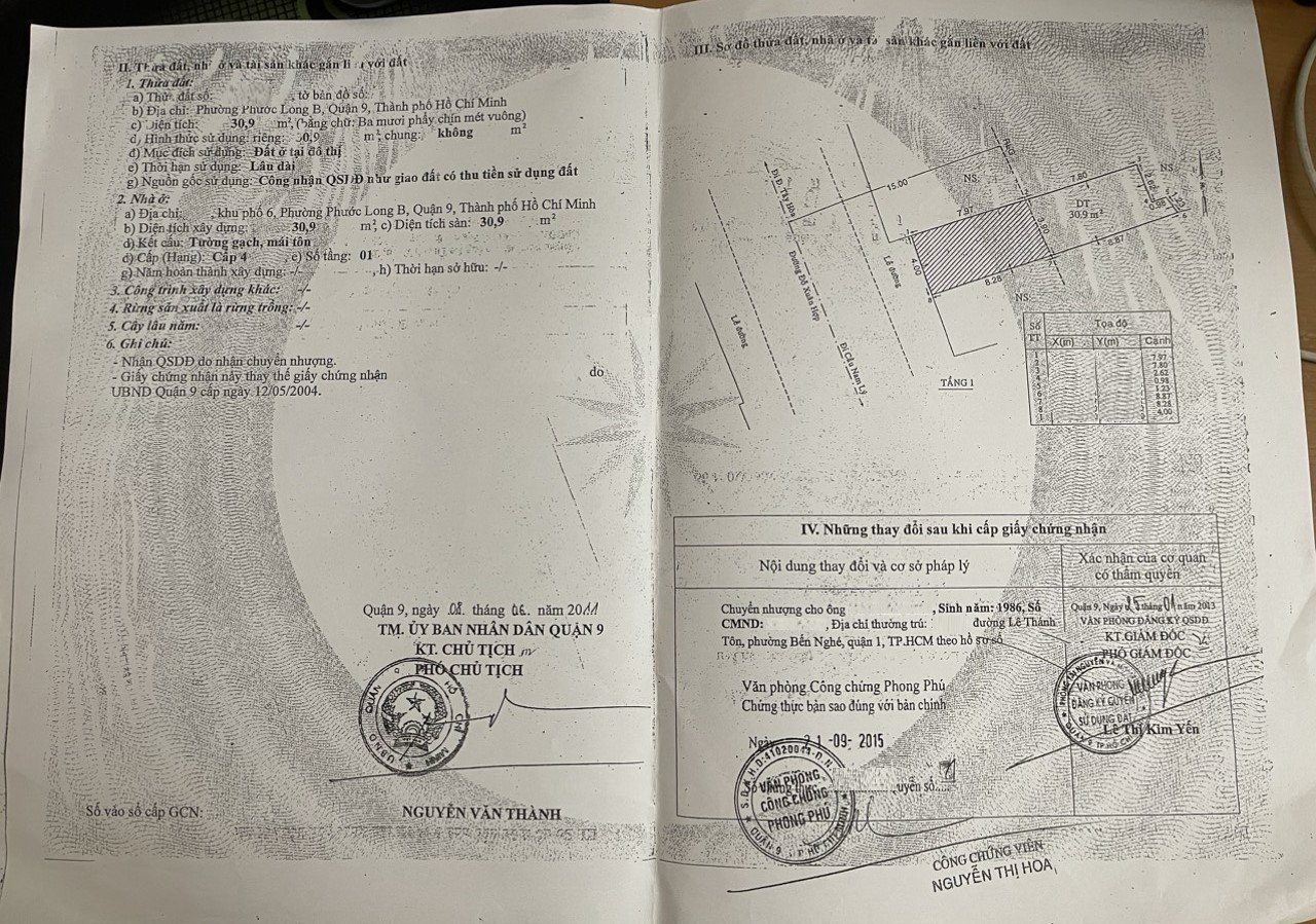 *Diện Tích đất công nhận: 30.9 m2 ngang 4 m x dài 7.7 m