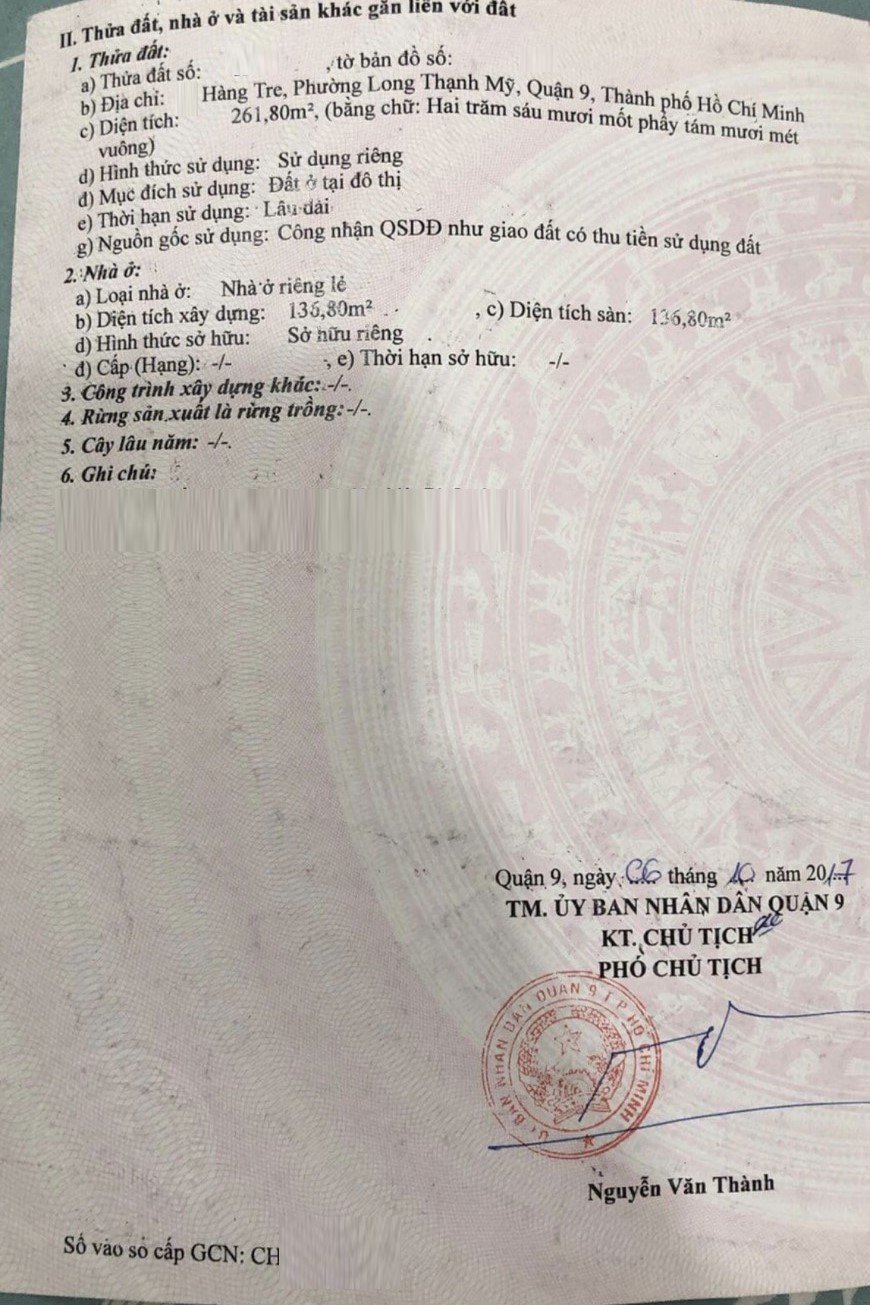 Loại BDS Hồ Chí Minh, Nhà đất bán, Nhà mặt tiền, Quận 9 Pháp lý SỔ HỒNG Sân thượng