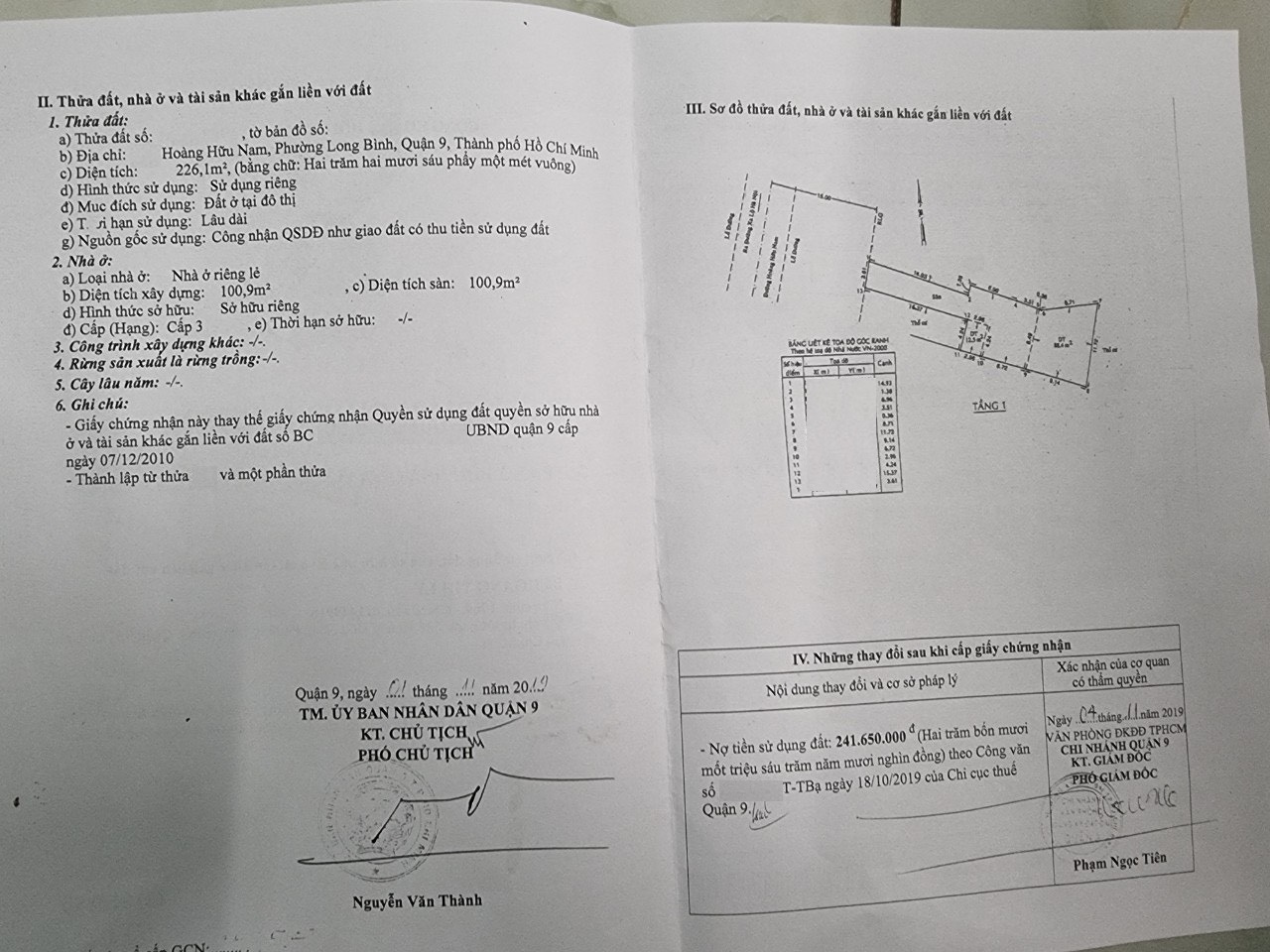 Địa chỉ tài sản: đường Hoàng Hữu Nam, phường Long Bình. , Phường Long Bình, Quận 9, Hồ Chí Minh