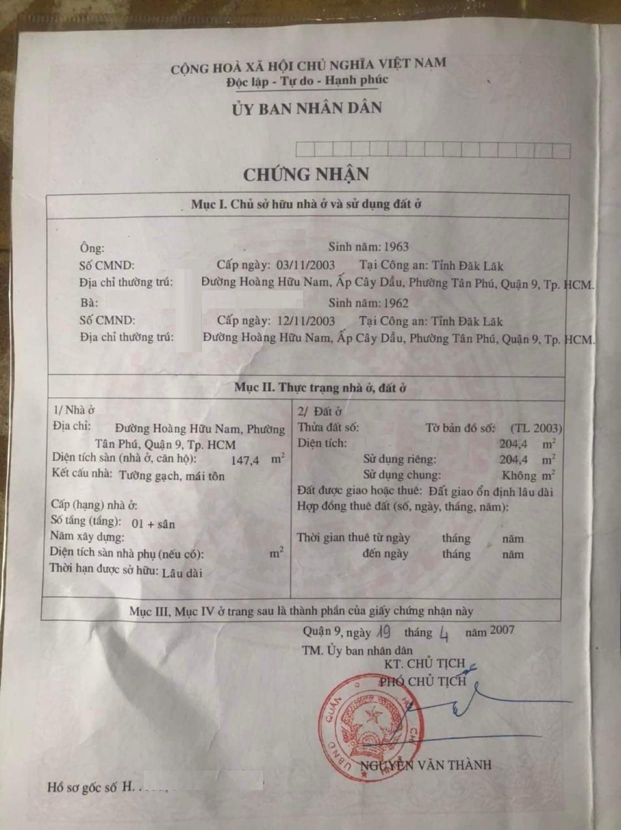 Địa chỉ tài sản: Đường Hoàng Hữu Nam , phường Tân Phú, Phường Tân Phú, Quận 9, Hồ Chí Minh
