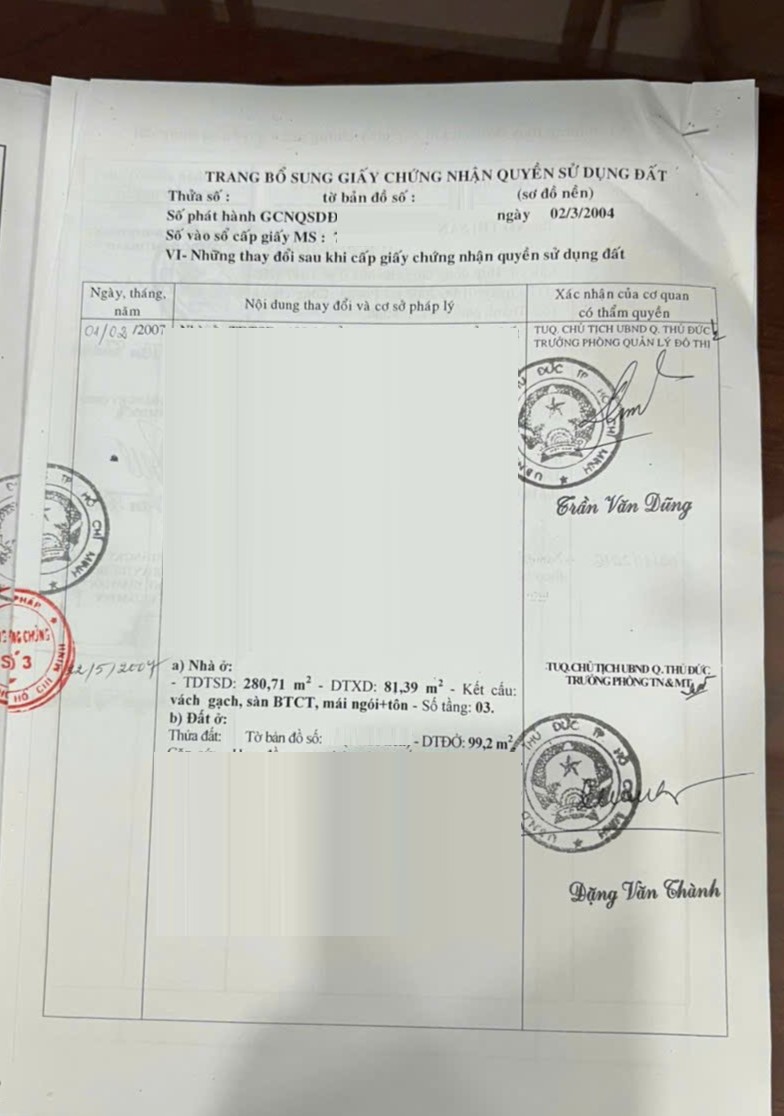 *Diện Tích đất công nhận: 200 m2 .Gồm 2 sổ: