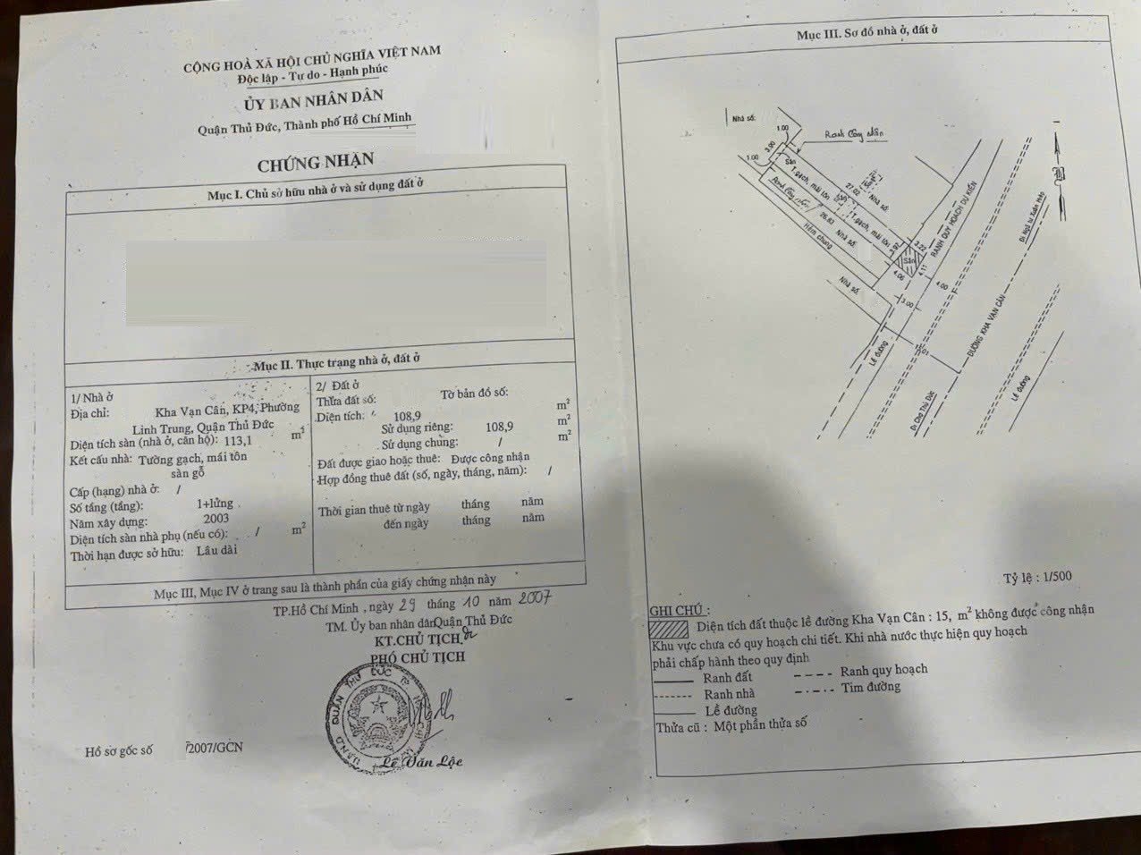 *Diện tích đất công nhận: 108.9m. Ngang 4.11m x Dài 30.8m. Chưa hoàn công