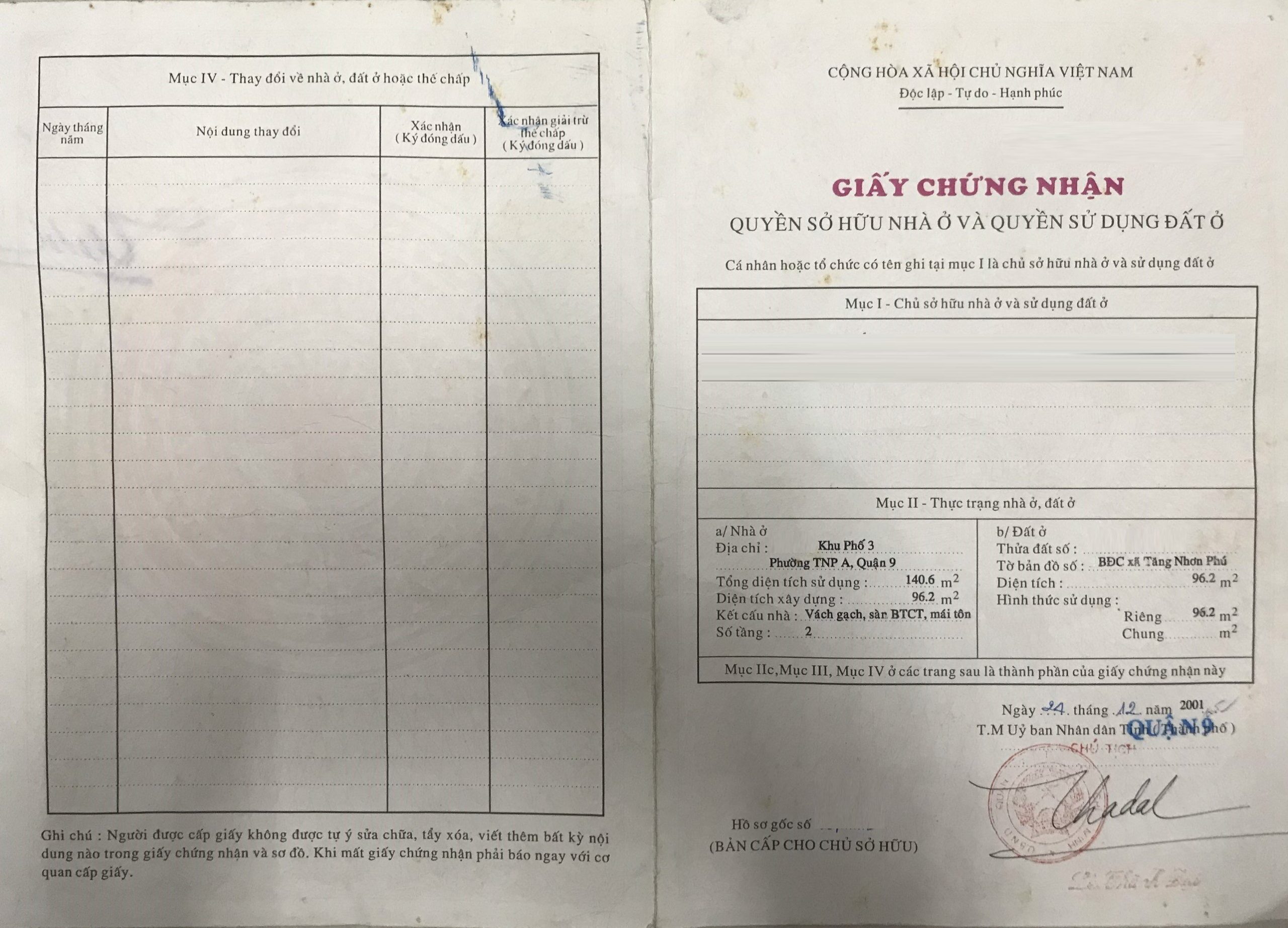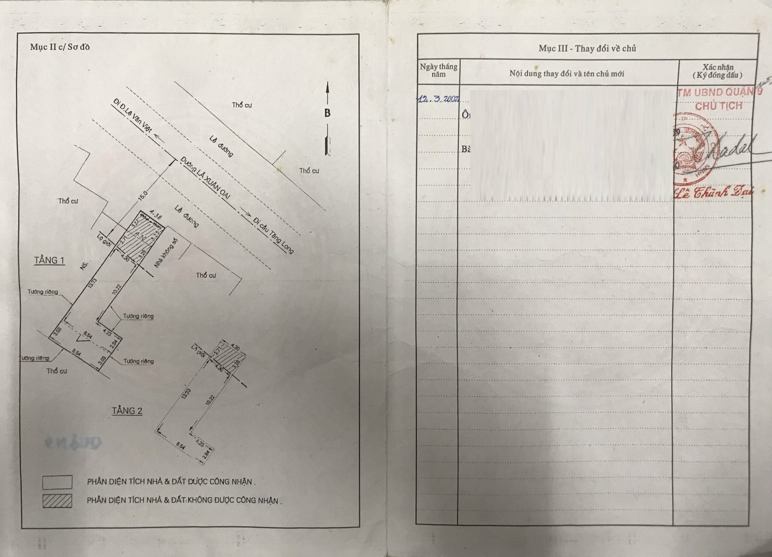 *Diện tích đất công nhận: 96.2m2. Ngang 4.38m (nở hậu 8.54m) x Dài 22m.