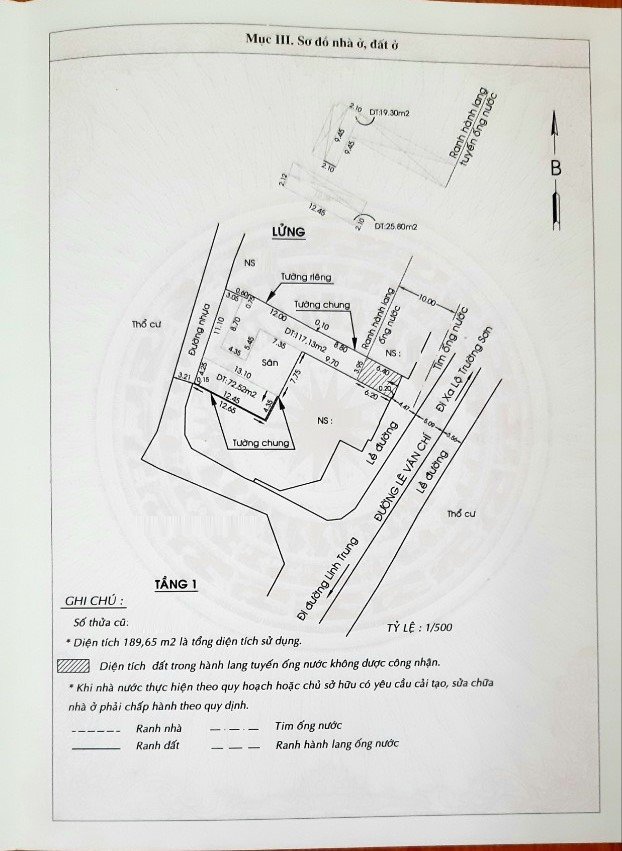 *Diện Tích đất công nhận: 258.11 m2 ngang 3.95 m x dài 28 m nở hậu ngang mặt tiền sau 15.5m