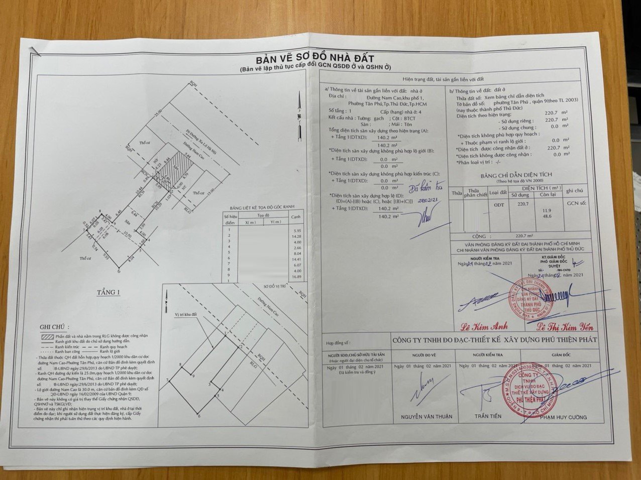 *Diện tích đất công nhận: 220.7m2. Ngang 5.44m x Dài 32m. Chưa hoàn công