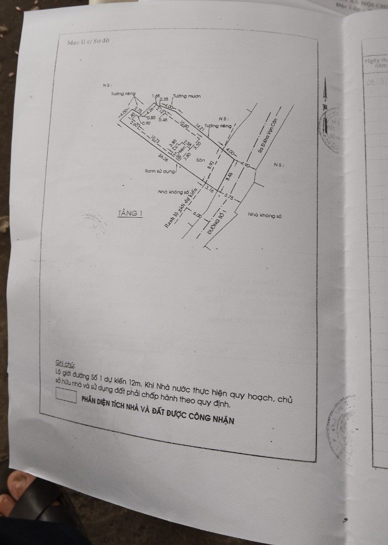 *Diện tích đất công nhận: 236.5m2. Ngang 8.46m x Dài 29.5m. Chưa hoàn công