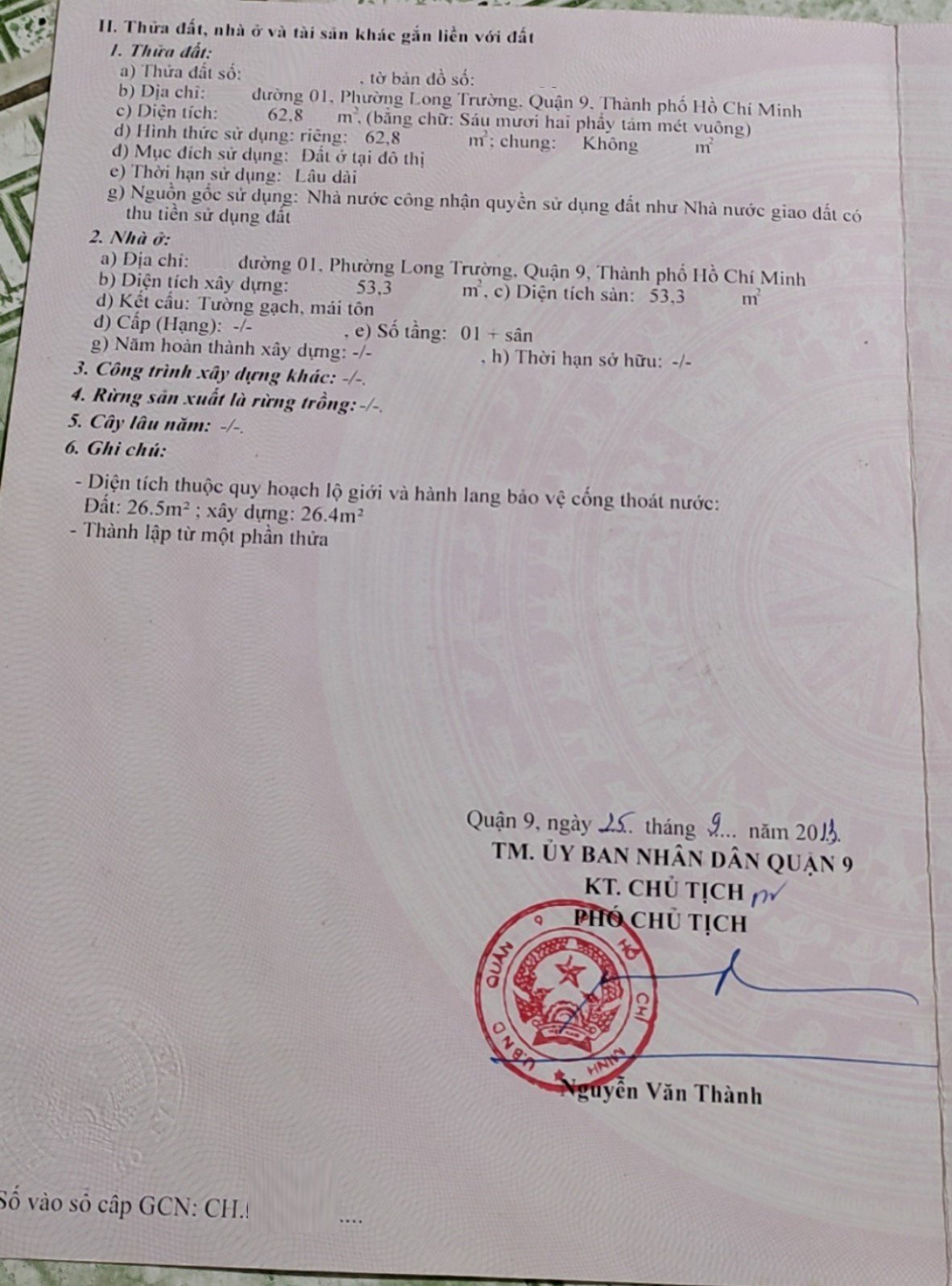 Địa chỉ tài sản: đường số 1, phường Long Trường, TP Thủ Đức, Phường Long Trường, Quận 9, Hồ Chí Minh