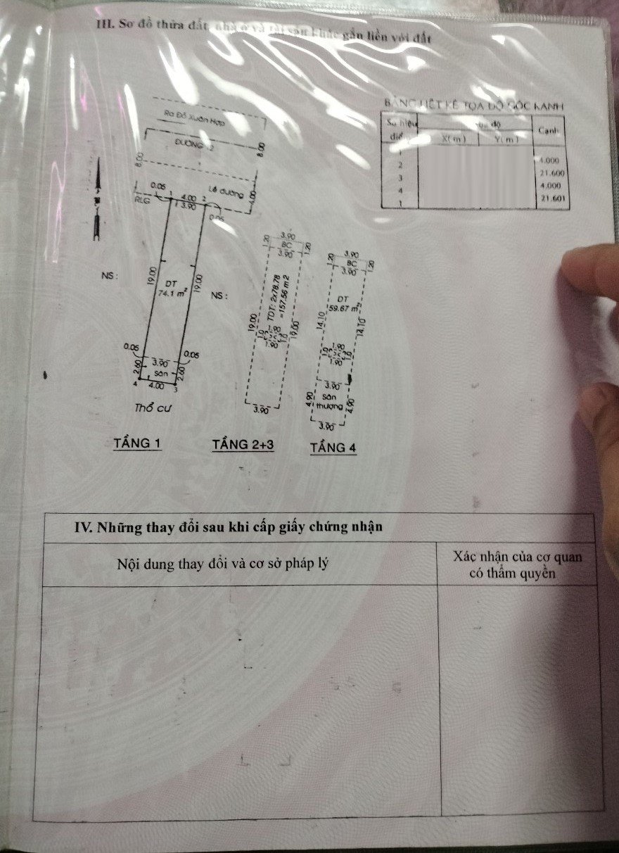 *Diện tích đất công nhận: 86.4m2. Ngang 4m x Dài 21.6m.