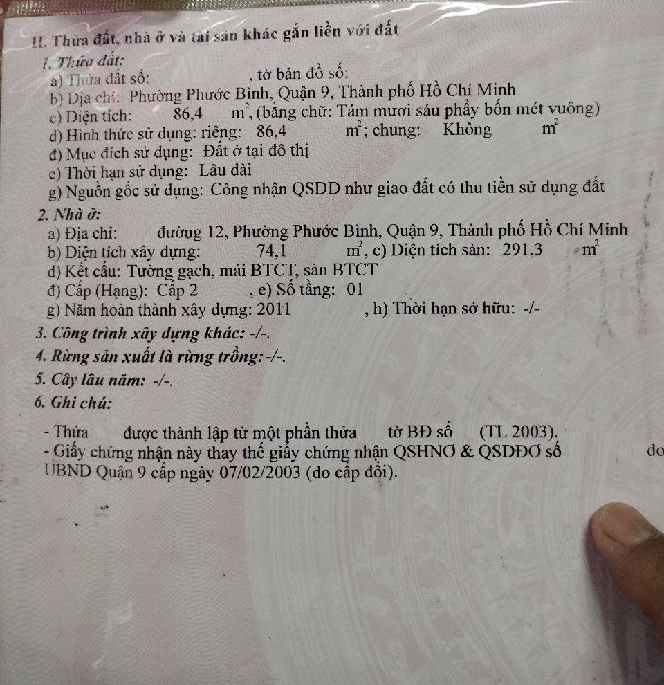 Địa chỉ tài sản: mặt tiền đường số 12, phường Phước Bình, Phường Phước Bình, Quận 9, Hồ Chí Minh