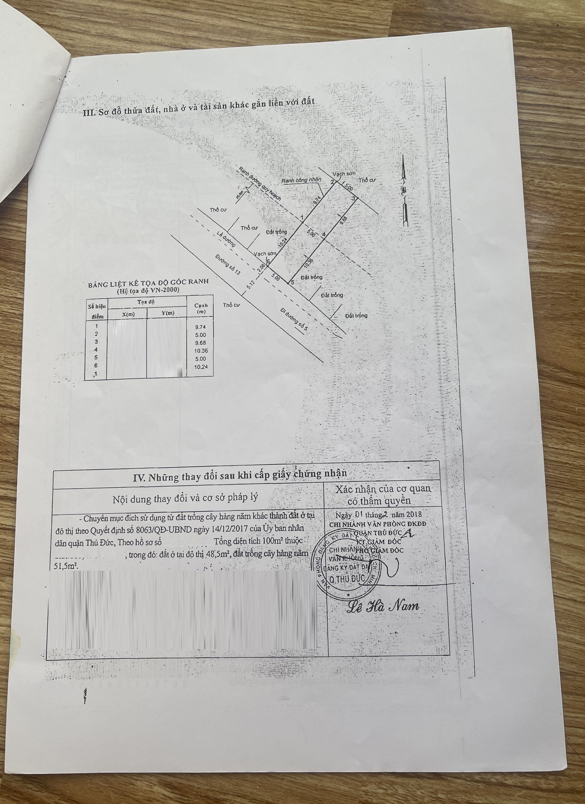 *Diện Tích đất công nhận: 100 m2 ngang 5 m x dài 20 m