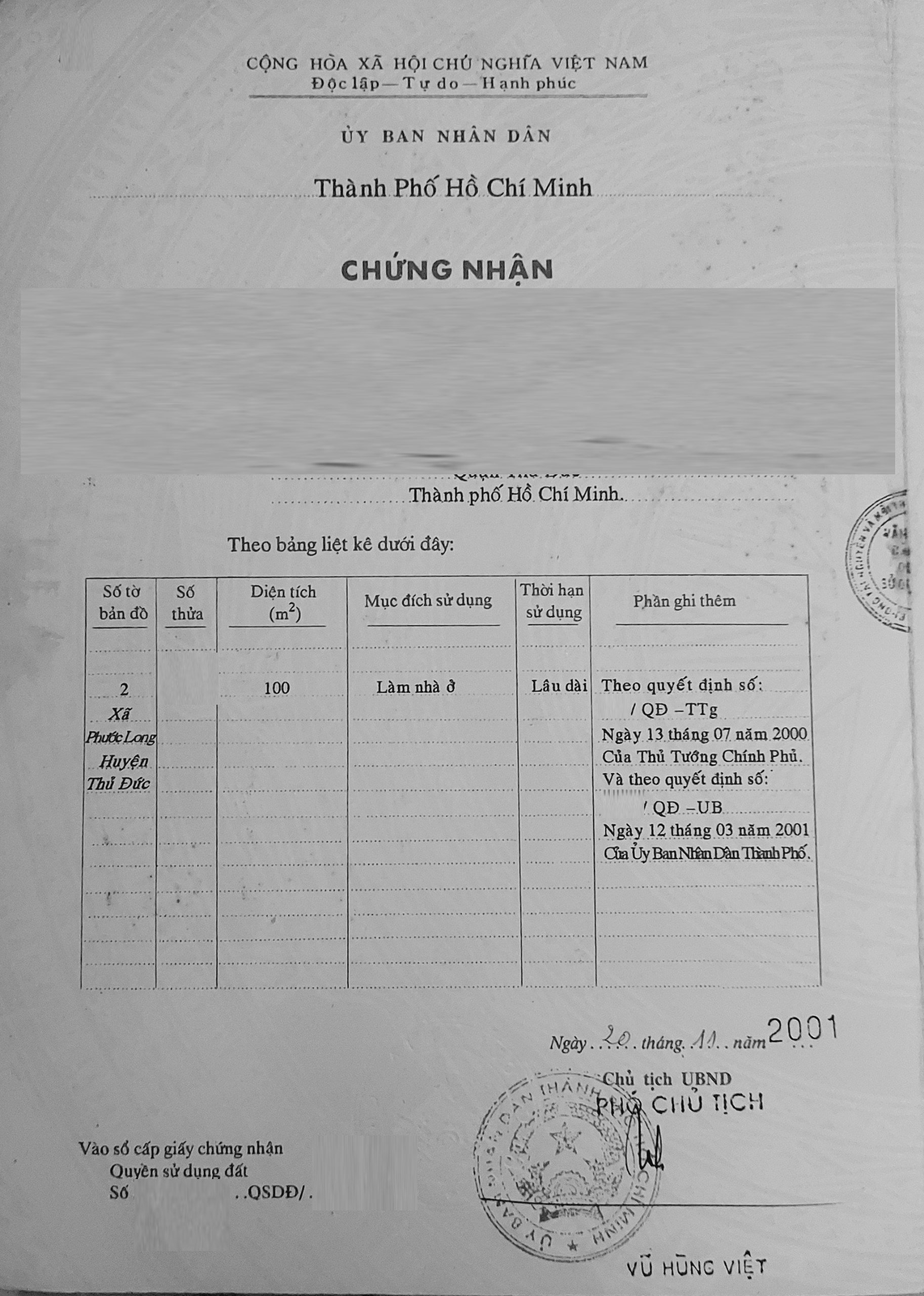 *Diện tích đất công nhận: 100m2. Ngang 5m x Dài 20m