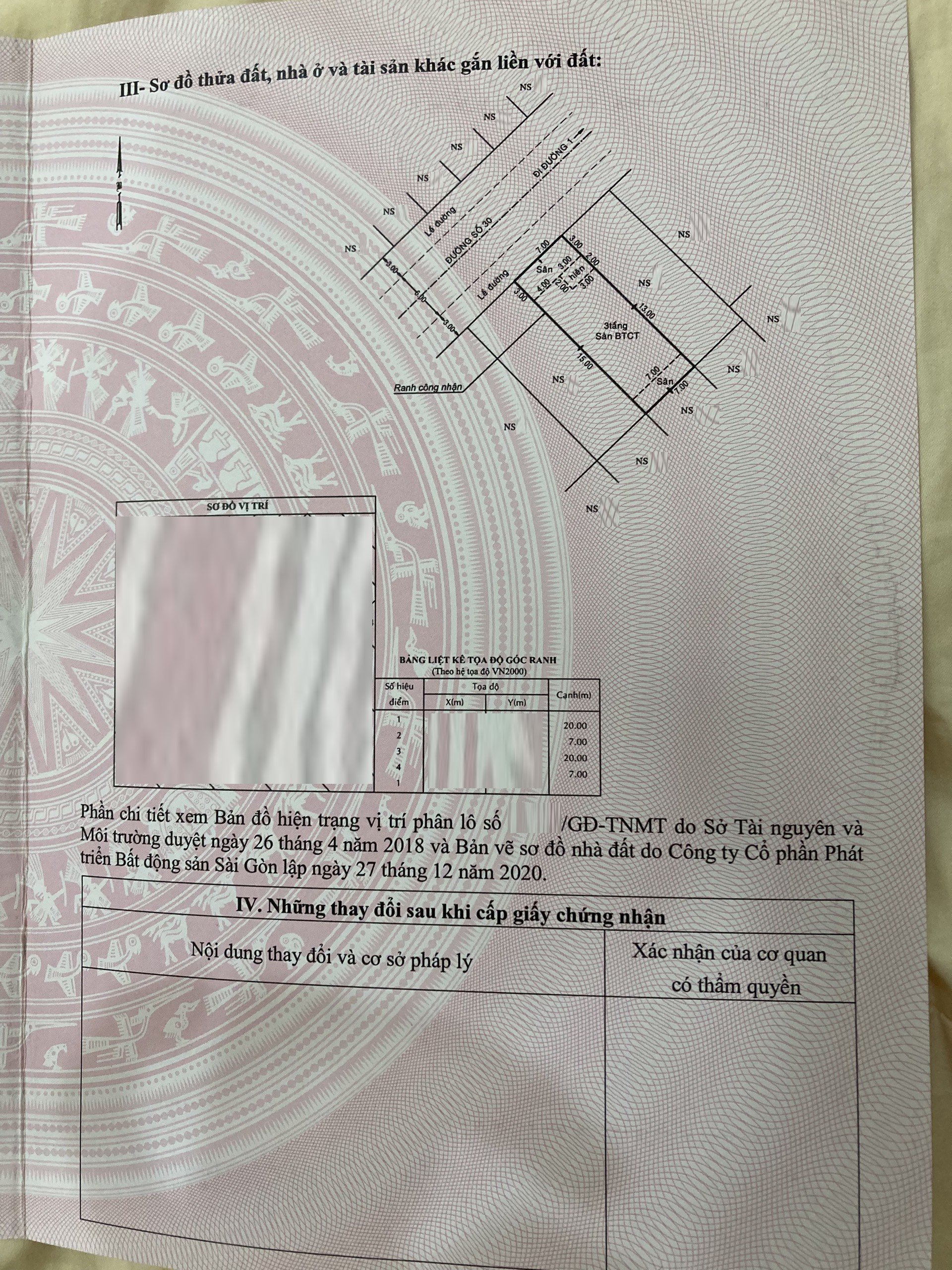 *Diện tích đất công nhận: 140m2. Ngang 7m x Dài 20m.