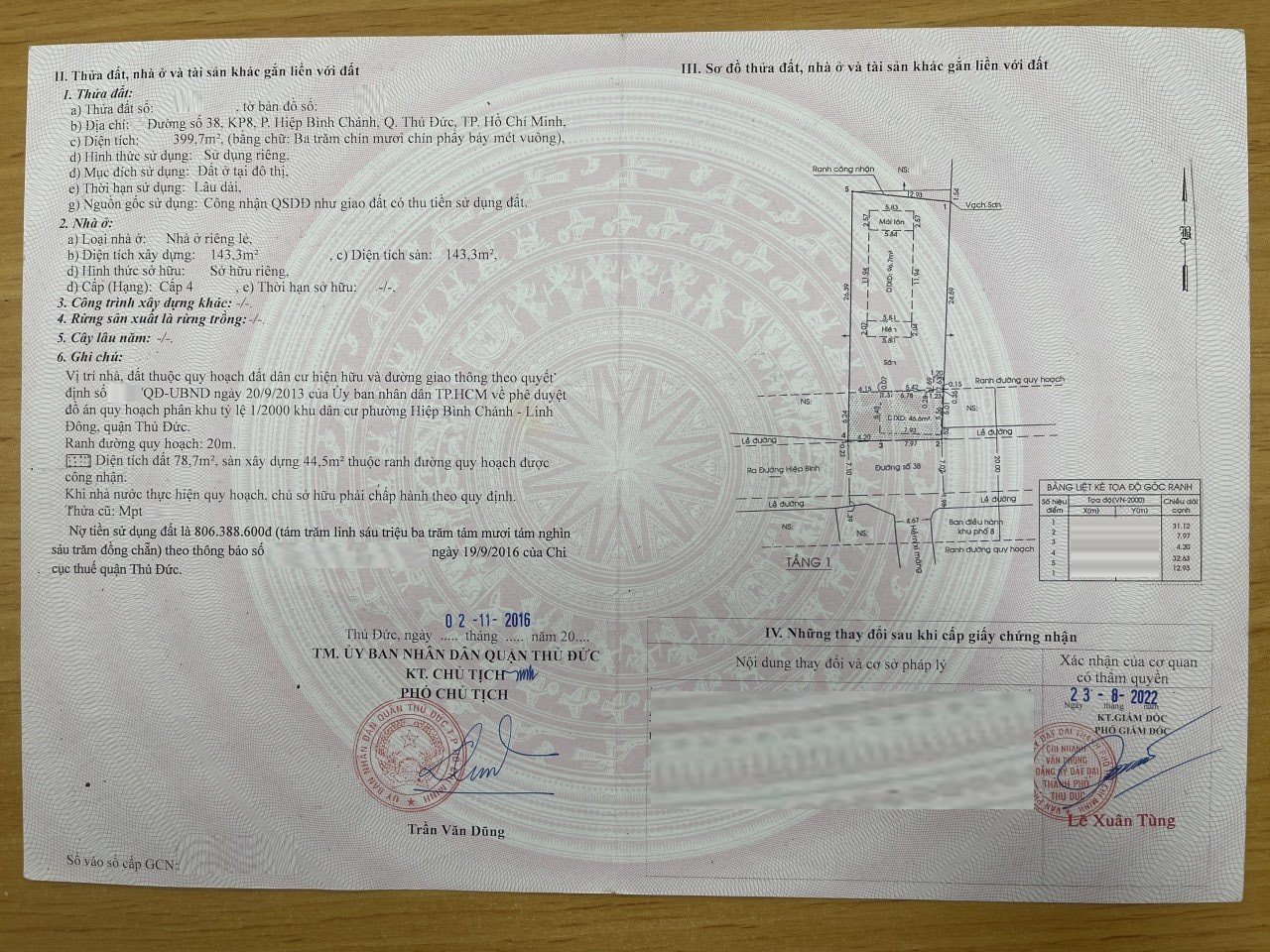 Địa chỉ tài sản: mặt tiền đường số 38, phường Hiệp Bình Chánh, TP Thủ Đức, Phường Hiệp Bình Chánh, Quận Thủ Đức, Hồ Chí Minh