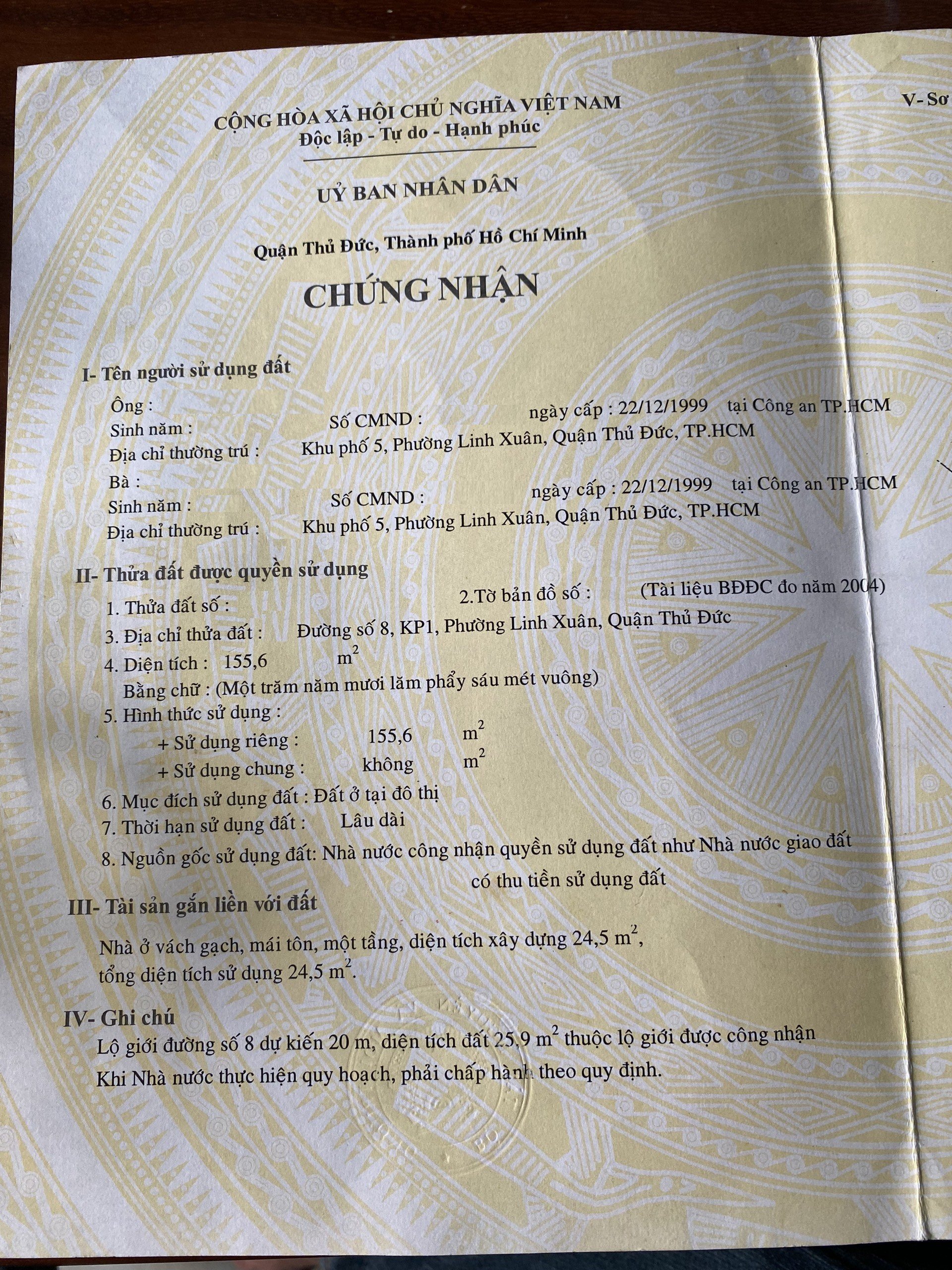 Địa chỉ tài sản: đường số 8, Linh Xuân, Phường Linh Xuân, Quận Thủ Đức, Hồ Chí Minh