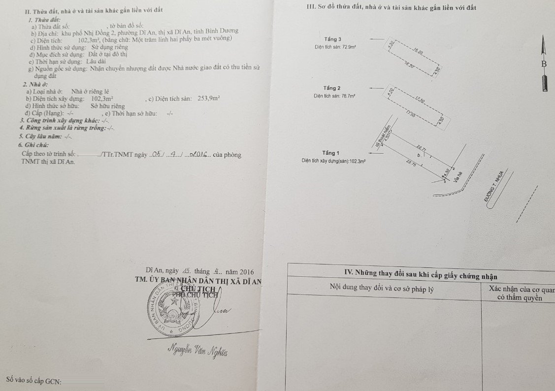 *Diện Tích đất công nhận : 102.3m2 ngang  4.5m x dài  22.7m