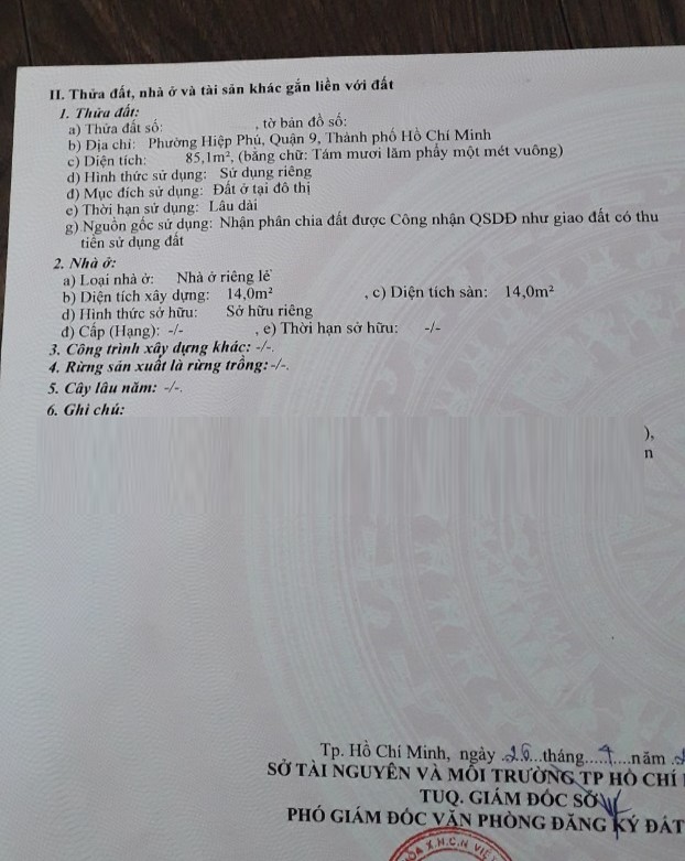 Địa chỉ tài sản: Mặt tiền đường Tân Lập 1, Phường Hiệp Phú,, Phường Hiệp Phú, Quận 9, Hồ Chí Minh