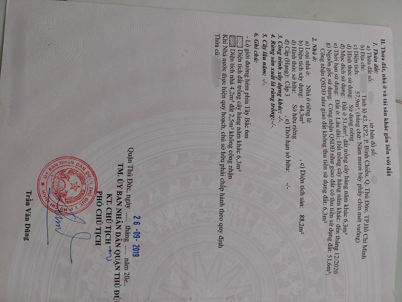 Địa chỉ tài sản: Đường Tỉnh lộ 43, Phường Bình Chiểu, Phường Bình Chiểu, Quận Thủ Đức, Hồ Chí Minh
