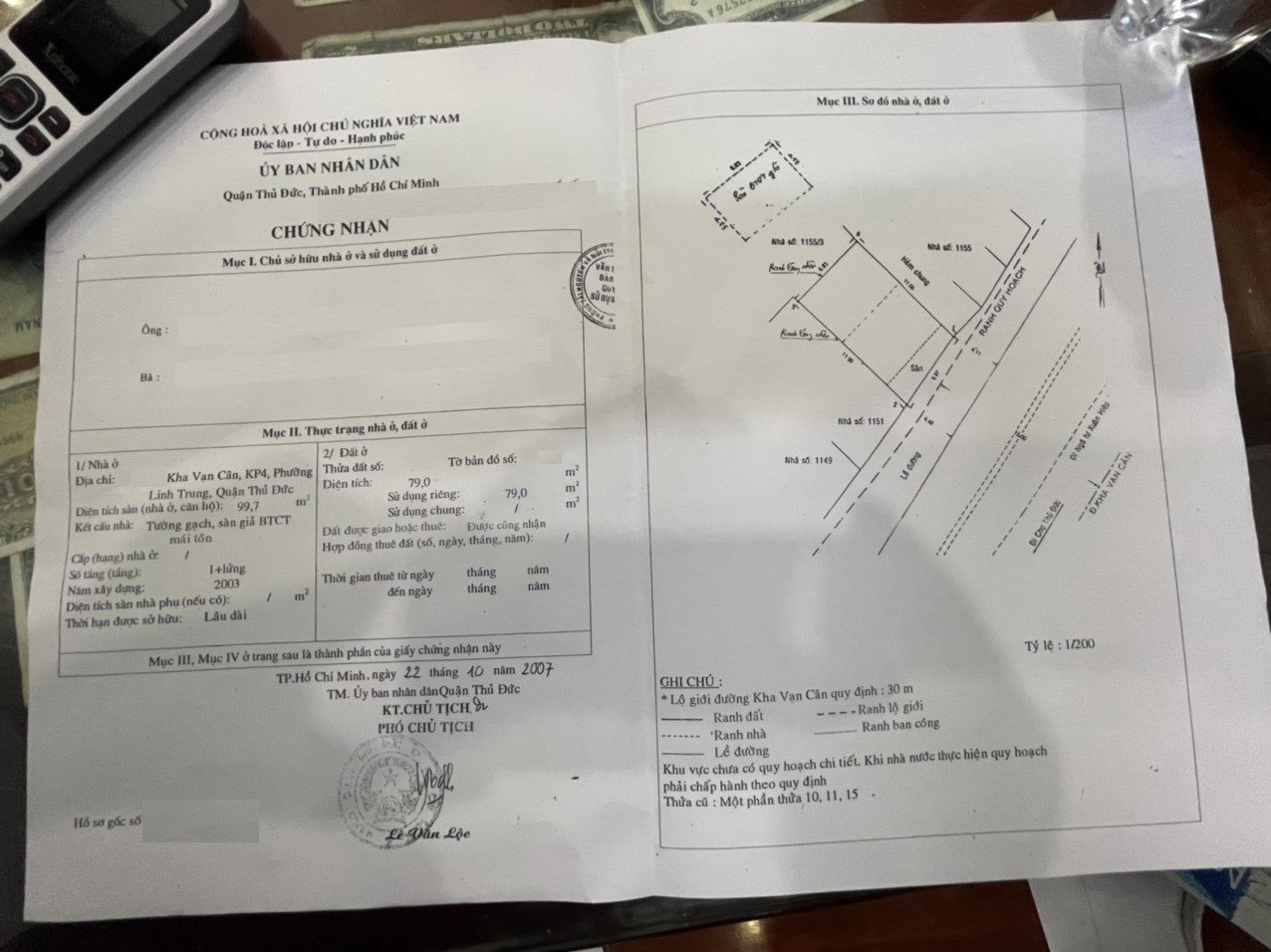 Diện tích đất công nhận: 79m ngang 7m dài 11.3m