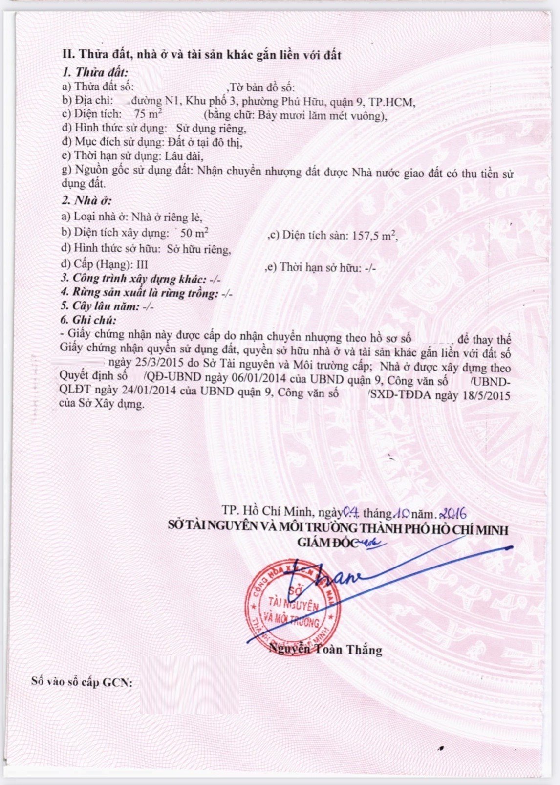 *Diện tích đất công nhận: 75m2. Ngang 5m x Dài 15m