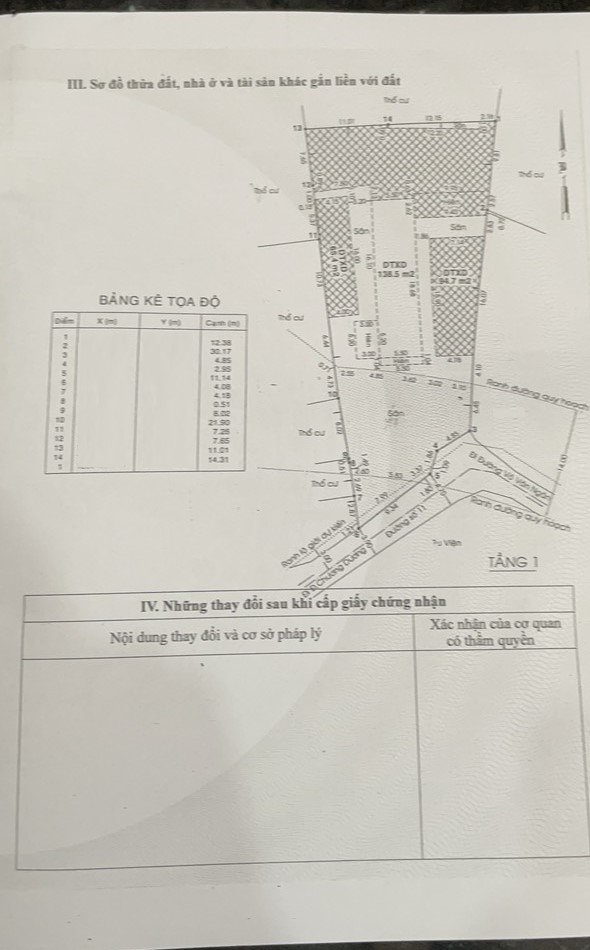 *Diện Tích đất công nhận: 946.9 m2  ODT: 720.3 m2 CLN: 226.6 m2