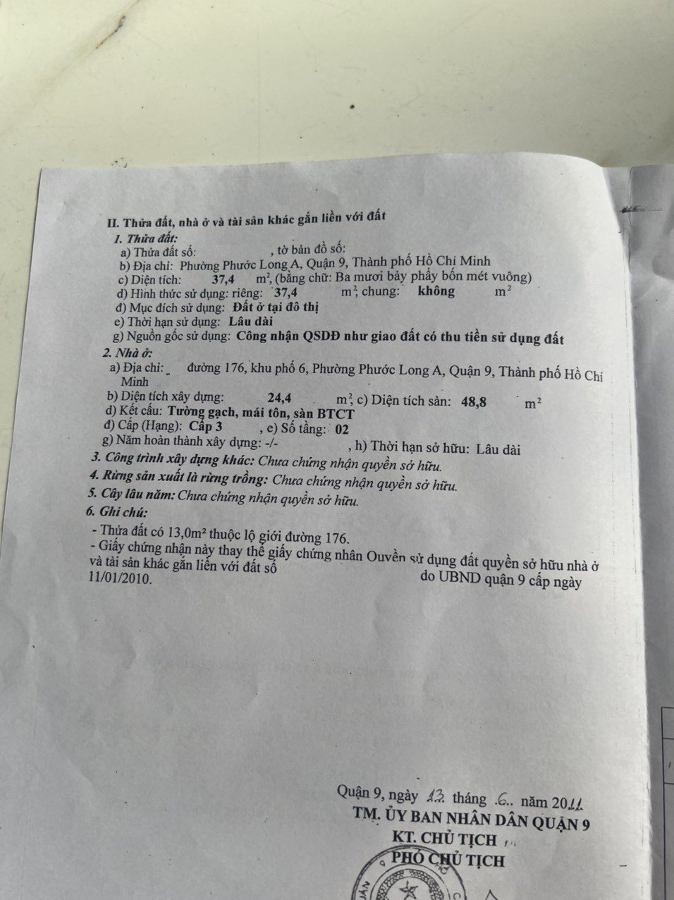 Địa chỉ tài sản: Đường 176, Phường Phước Long A, Phường Phước Long A, Quận 9, Hồ Chí Minh