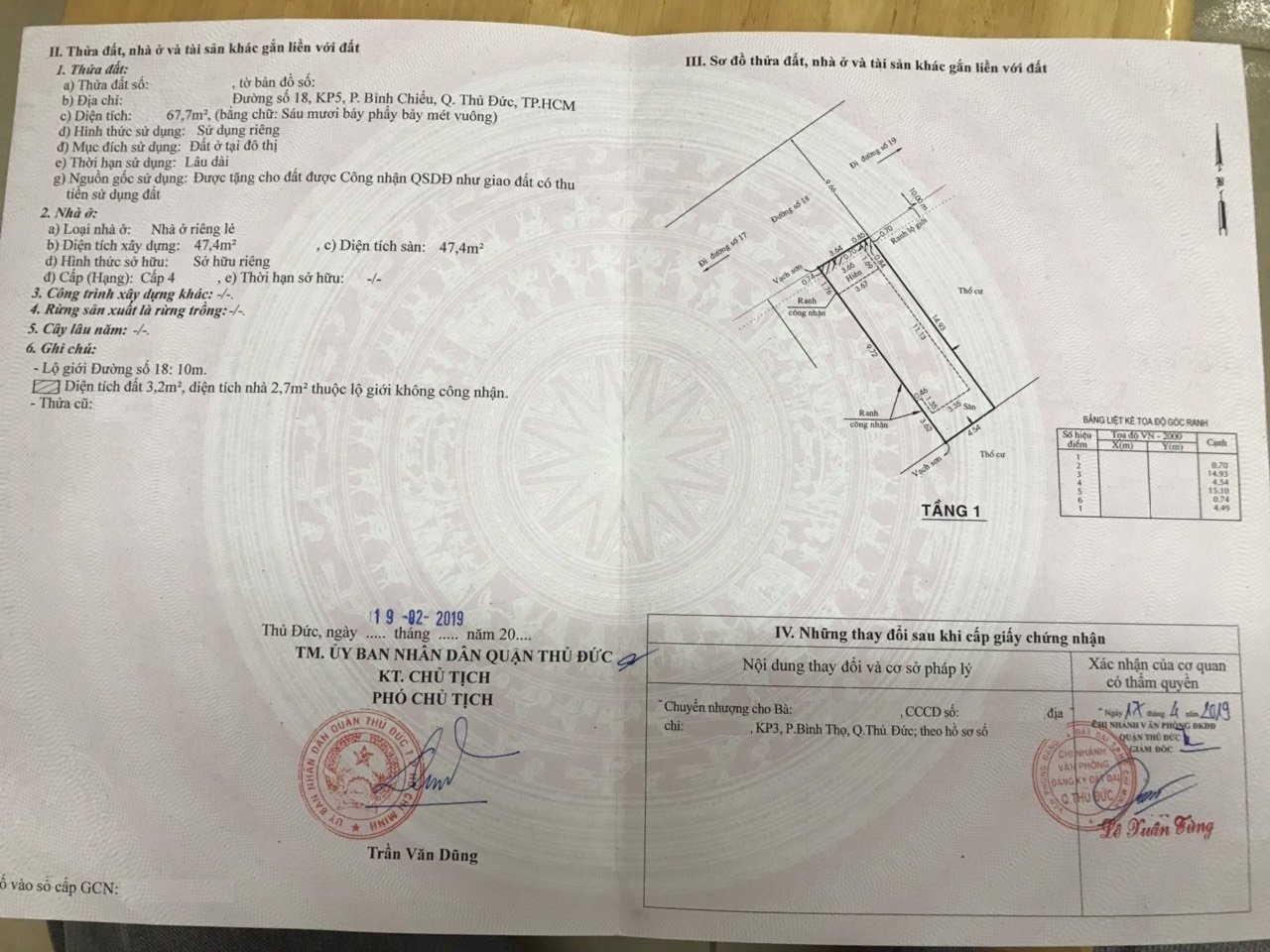 Diện Tích đất công nhận: 67.7m² (ngang 4.49m nở hậu 4.54m x dài 14.93m)