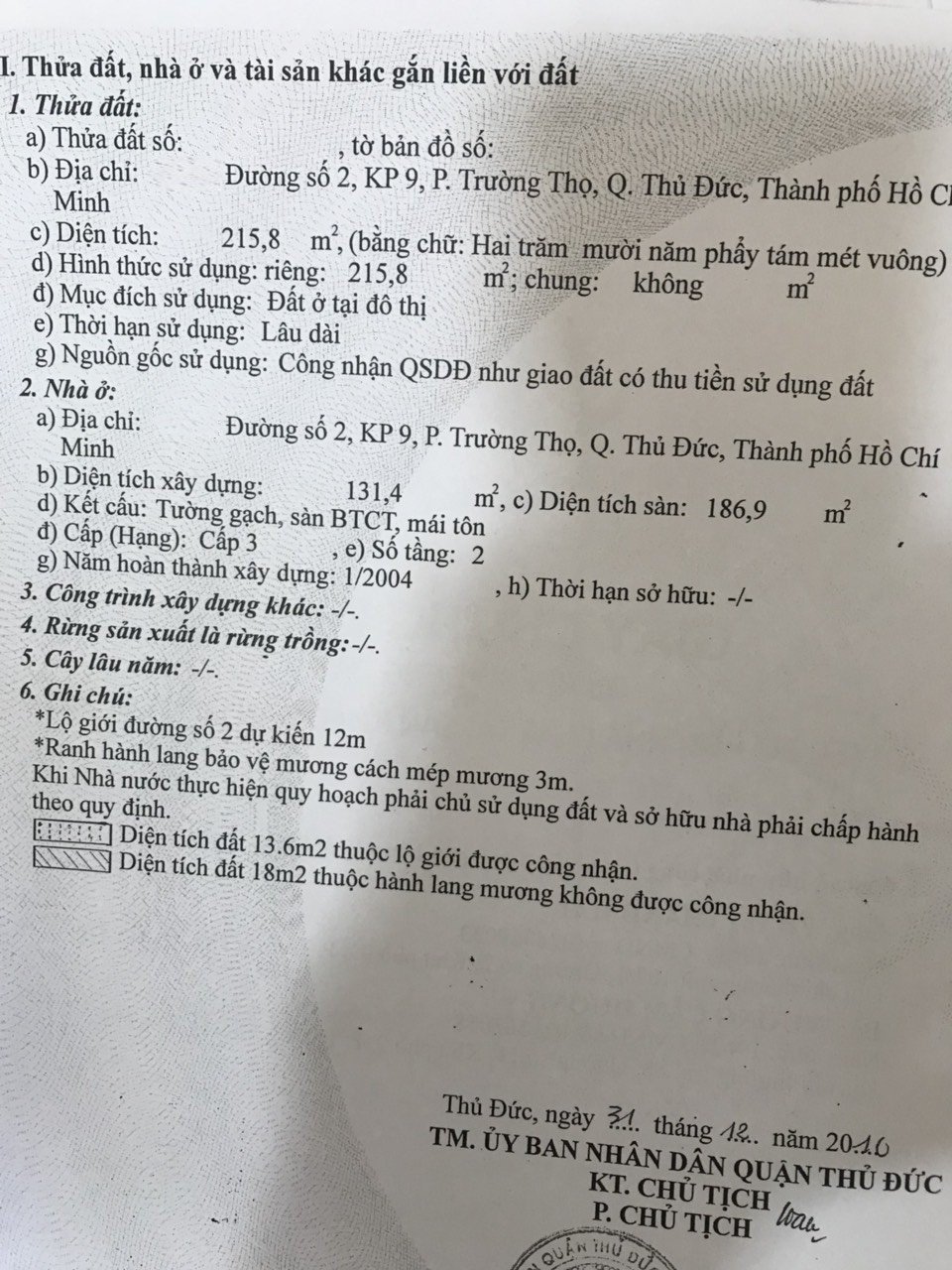 Địa chỉ tài sản: đường 2, phường Trường Thọ, Phường Trường Thọ, Quận Thủ Đức, Hồ Chí Minh