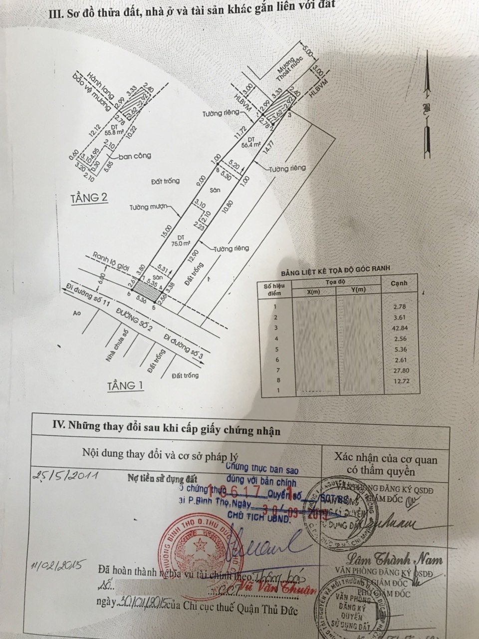 *Diện Tích đất công nhận: 215.8 m2 ngang 5.3m top hậu 2.4 m x dài 48 m