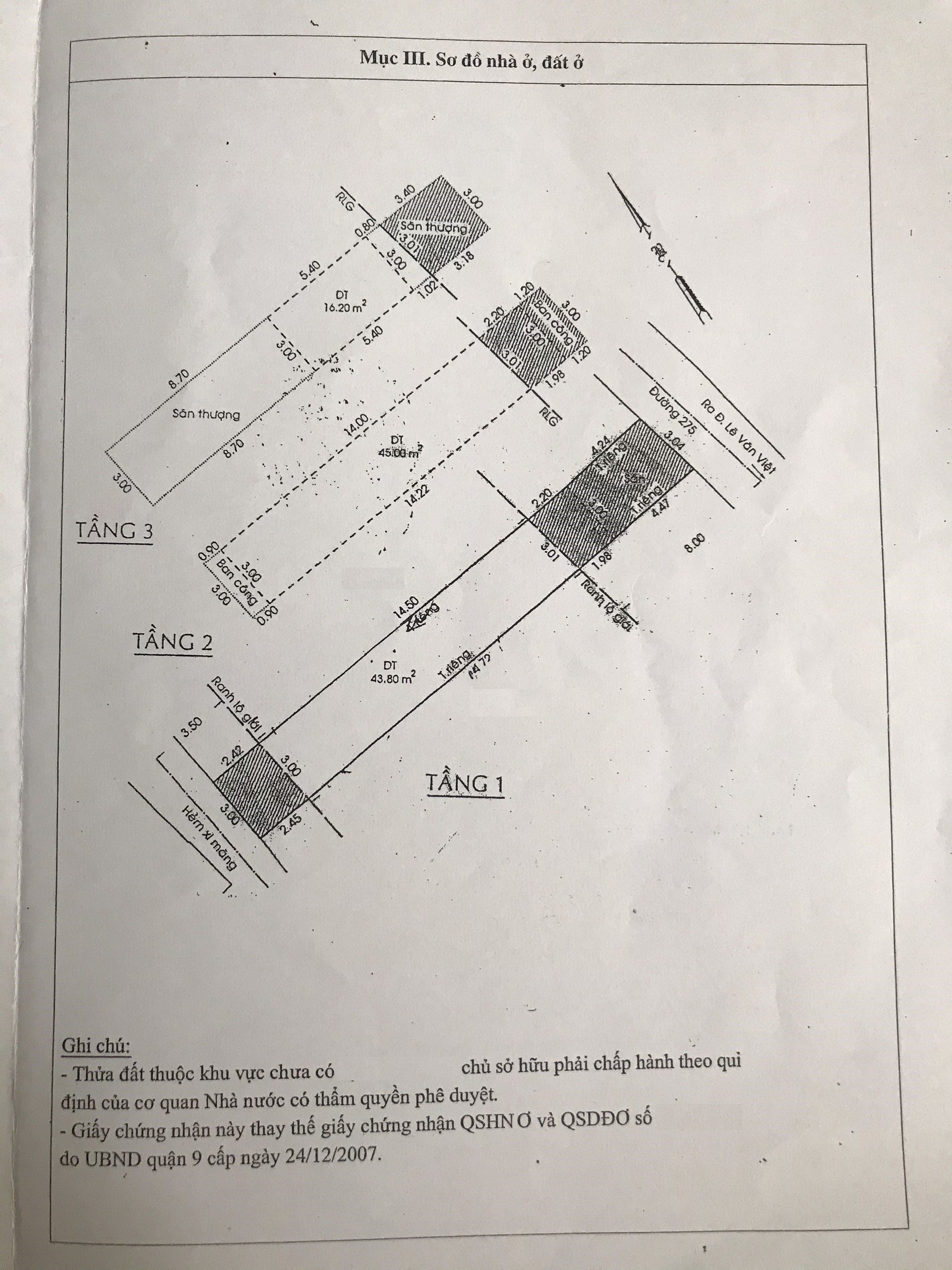 Diện Tích đất công nhận: 43.8 m2 ngang 3 m x dài 14.22 m