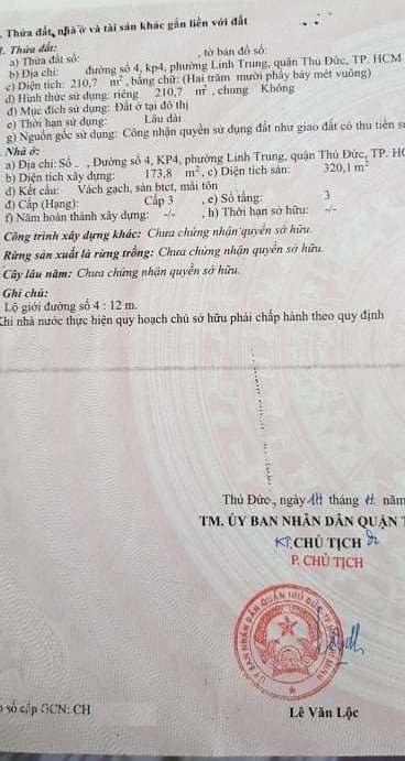 Địa chỉ tài sản: đường 4, phường Linh Trung, Phường Linh Trung, Quận Thủ Đức, Hồ Chí Minh