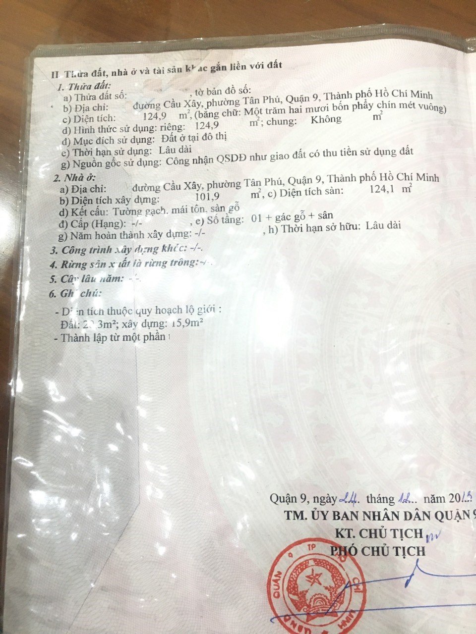 Địa chỉ tài sản: Đường Cầu Xây, Phường Tân Phú, Phường Tân Phú, Quận 9, Hồ Chí Minh